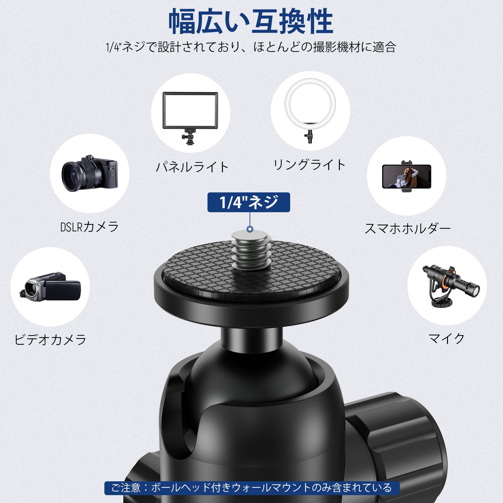 - 【汎用1/4"ネジ】ストロボフラッシュ、DSLRカメラ、ビデオカメラ、セキュリティ監視カメラ、ビデオカメラ、ビデオライト、マイク、スマホホルダー、GoPro アクションカメラアダプター(すべて別売)にもコンパチブルです。