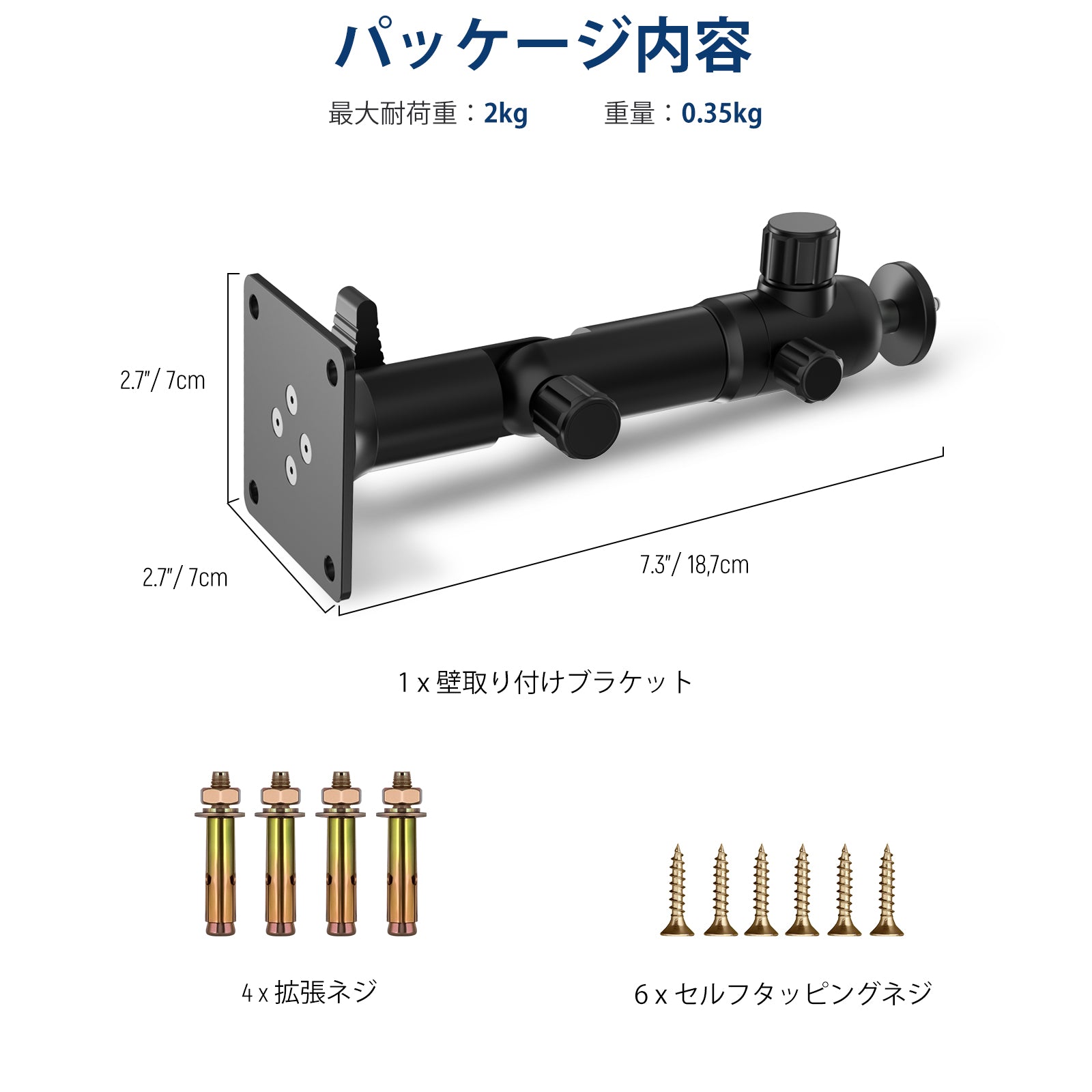 - 【省スペースカメラマウントブラケット】壁や天井、机の上などに2.7"/7cmの距離でデバイスを固定し、自由に調整することができます。特にスペースが限られている場合に床スペースを節約し、散らかりを軽減します。