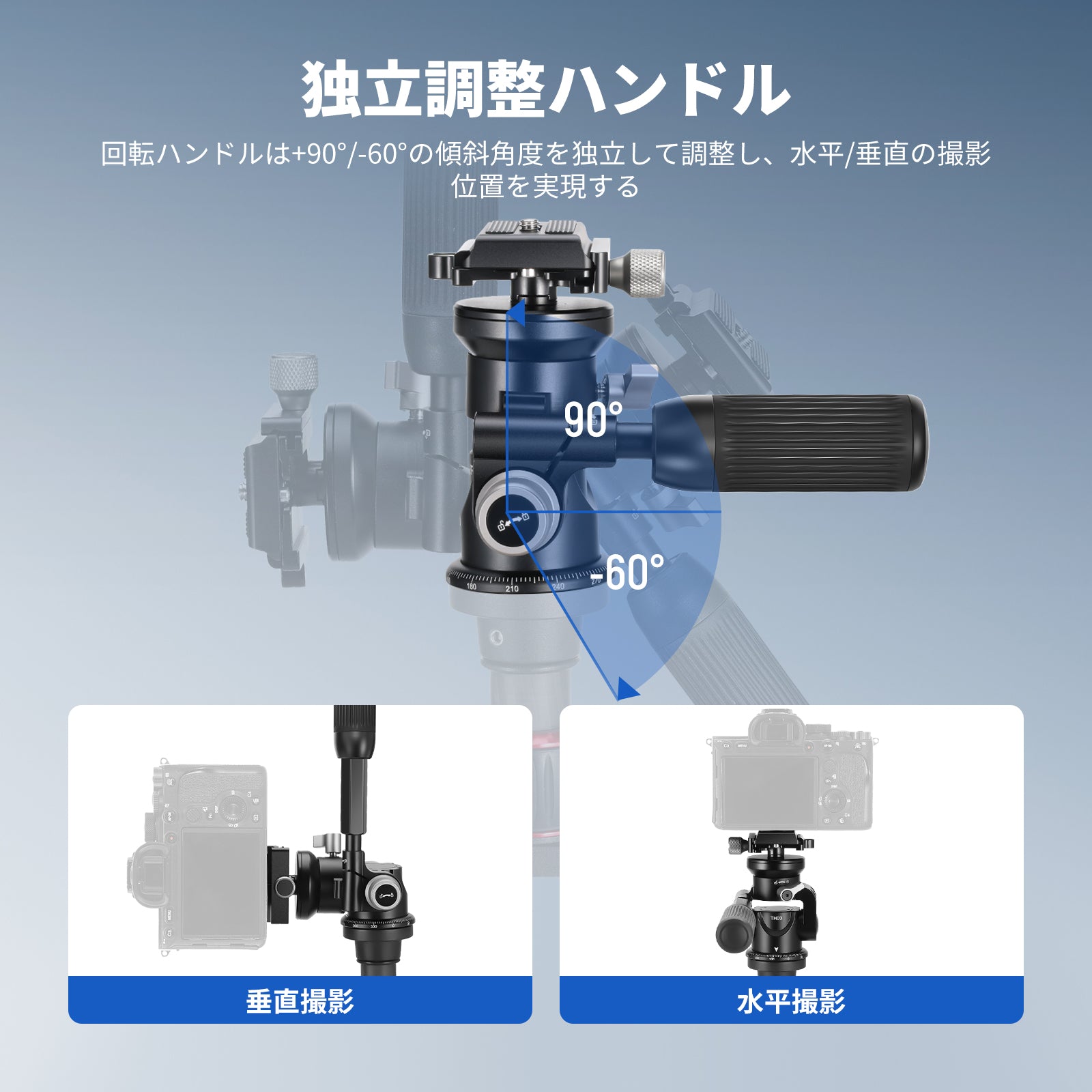 - 【柔軟で安定したビデオ三脚雲台】NEEWER TH03全金属三脚雲台はチルトとパンハンドルを備えており、カメラを360°回転させたり、+90°/-60°傾けたりすることができ、水平から垂直へのシームレスな移行を保証します。また、調整中でも最大5kgのカメラを安定してサポートし、写真撮影、撮影、ビデオ録画、vlog、生放送などに最適です。