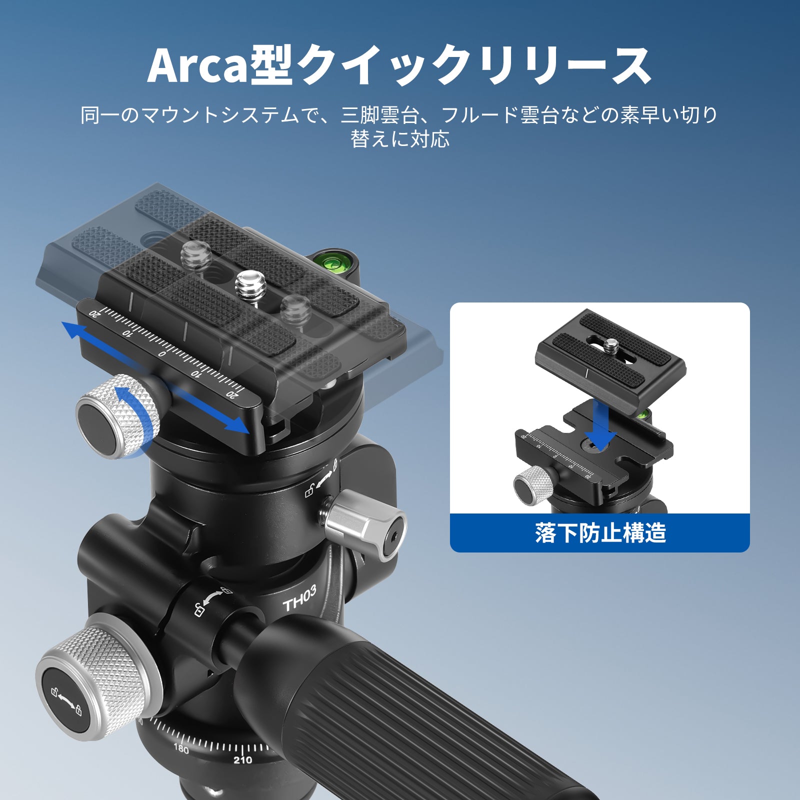 - 【Arca型クイックリリースプレート】1/4"ネジでマウントプレートをDSLRカメラ、ミラーレスカメラ、シネマカメラに取り付け、Arca型クイックリリースシステムにより、即座に雲台に取り付けることができます。市販上のDSLRカメラに対応します。滑り止めゴムパッドが傷を防ぎ、高価な機材の落下を防ぎます。