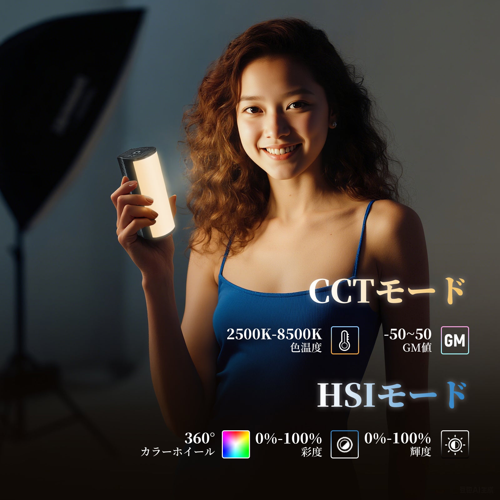 - 【CCT/HSI/FXモード創造的な照明】フィルムスティックライトは、正確な光線調整が特徴、照明シーンをカスタムできます。CCTモードで2500Kから8500Kまでの色温度を調整し、内蔵GM調整で色調整を行います。HSIモードは360°カラーホイール、0-100%明るさ、0-100彩度を微調整します。FXモードには、警官/パトカー、稲妻、花火などの17種シーン効果で創造性を発揮します。OLEDディスプレイと物理ボタンで直感的な操作が可能です。