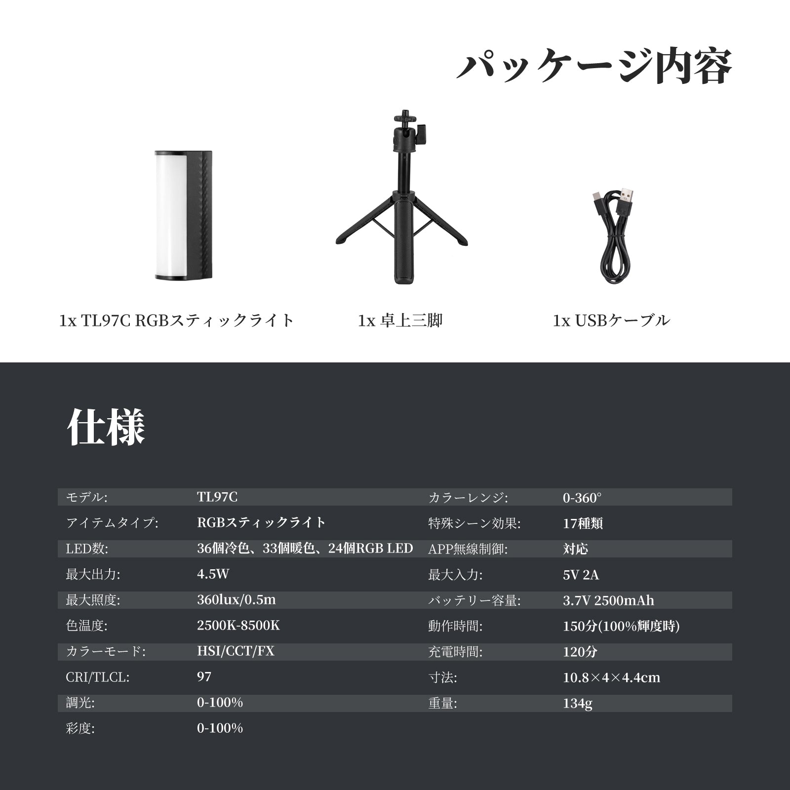 NEEWER TL97C 10cm マグネット式 スティックライト デスク三脚付き