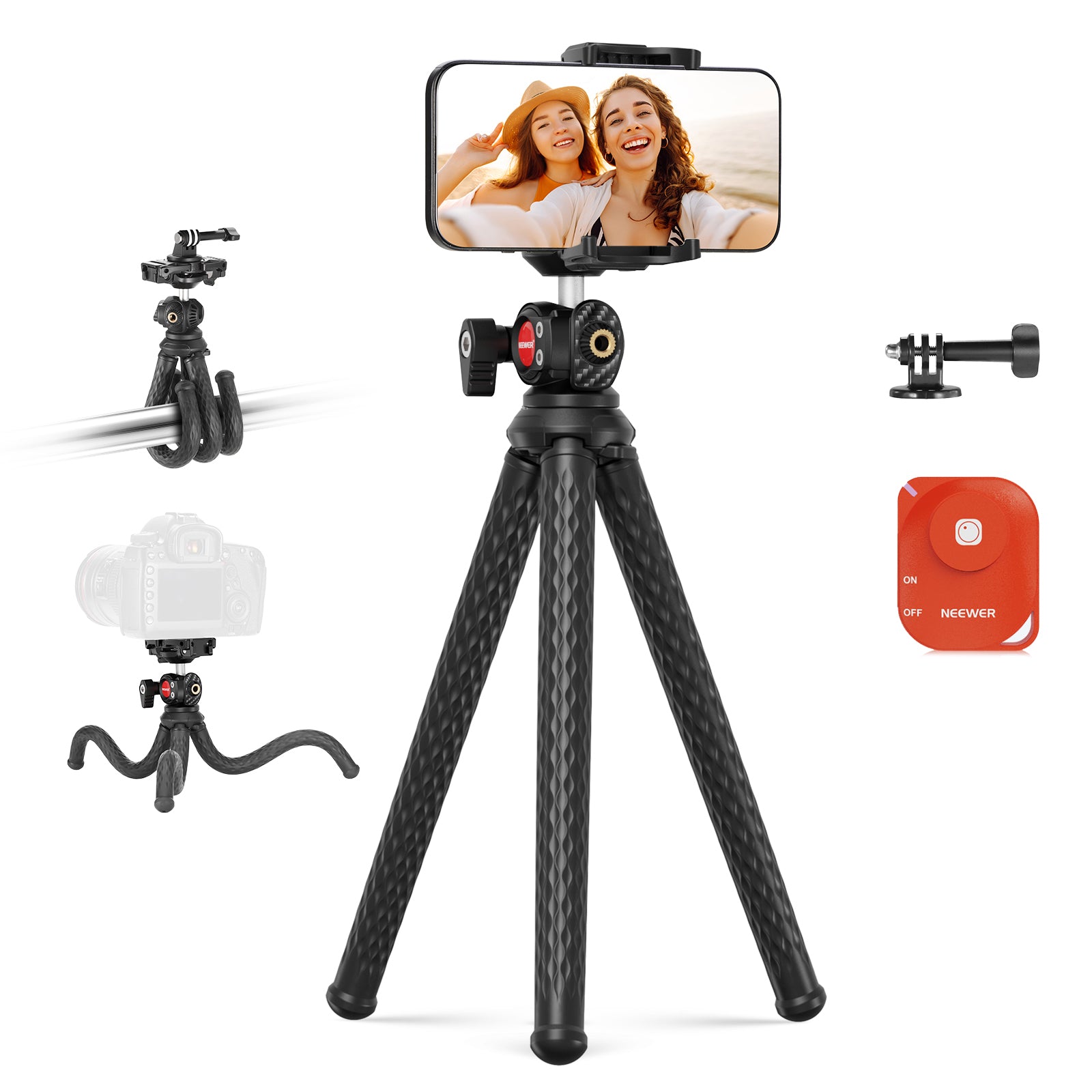 - 【ポータブル&軽量】全長12.2インチ(31cm)、重量わずか315gです。3本のフレキシブルレッグは、厚みのあるアルミ芯と耐久性に優れた滑り止めラバーで構成されています。カメラマウントプレートおよびスマホホルダーには保護用ラバーパッドを装備し、機器を傷から守ります。Bluetoothシャッターリリースにより、最大10m離れた場所からワイヤレスで写真・動画撮影が可能。画面に手を伸ばす必要がなく、快適に撮影を行えます。
