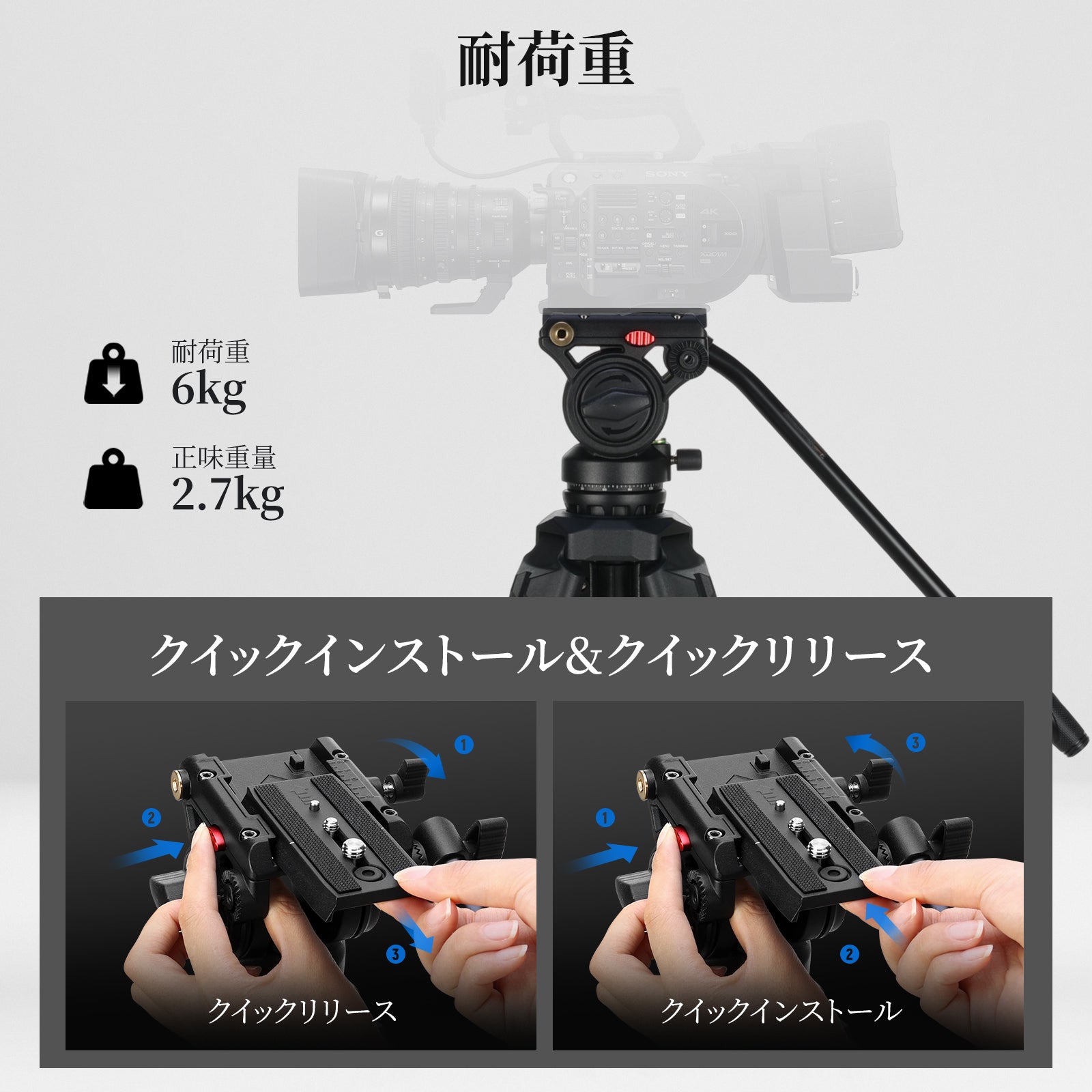 - 【素早く簡単なモード切り替え】フルードヘッドには2つQRモードがあり、それぞれコンパチブル 501PL 504PLクイックリリースプレート。クイックリリースプレートを使用すると、1秒でロックでき、三脚撮影とジンバル撮影を切り替えられます。