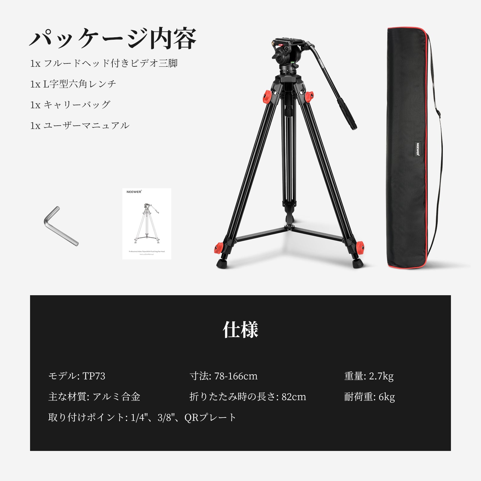 NEEWER TP73 165cm アルミ合金 軽量 ビデオ三脚