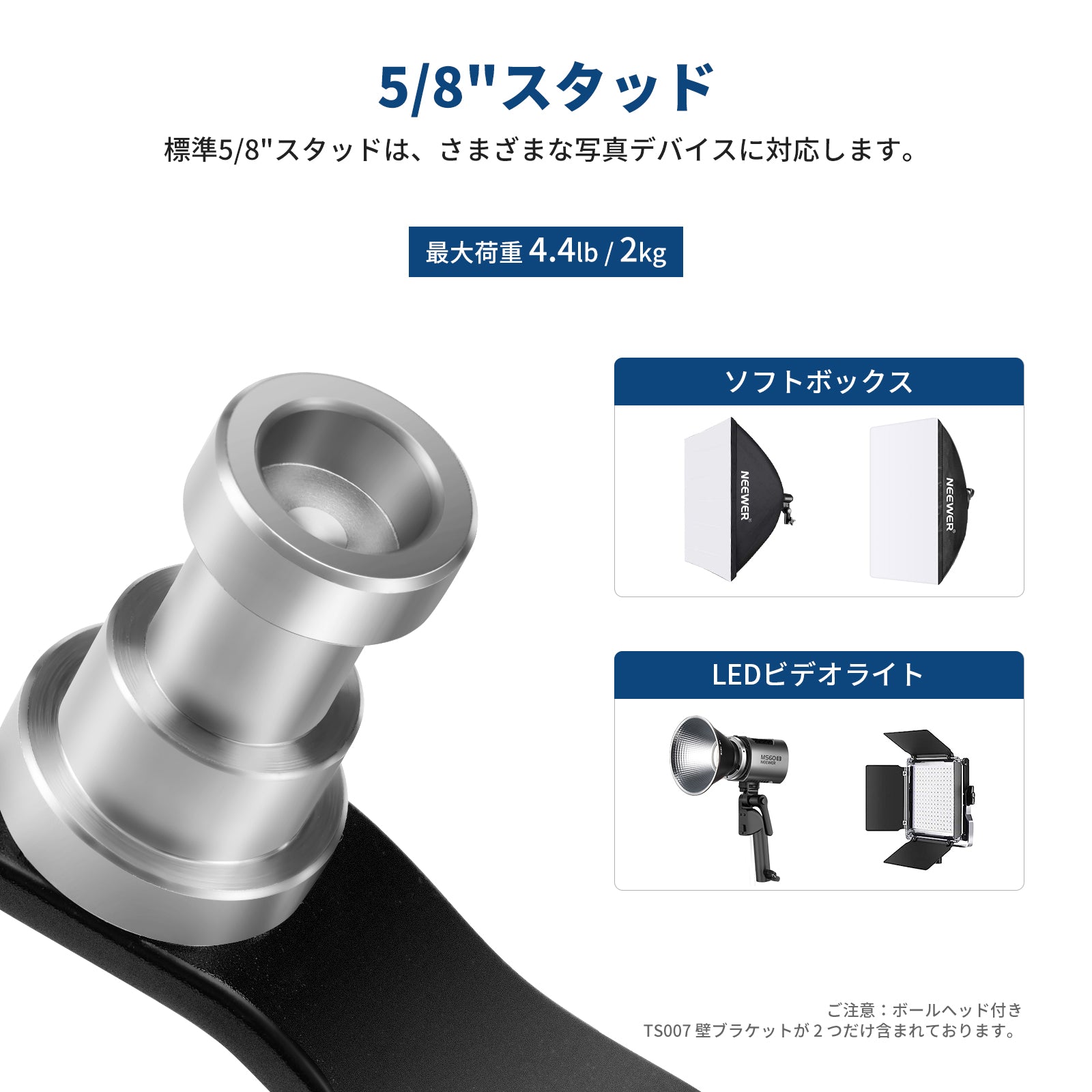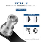 【1/4"ネジ&5/8"スタッド】このマウントは5/8"スタッドと1/4"ネジを備えており、リングライト、スタジオ照明LEDビデオライト、フラッシュストロボ、カメラ、モニターなどのさまざまなタイプのデバイスに対応します。