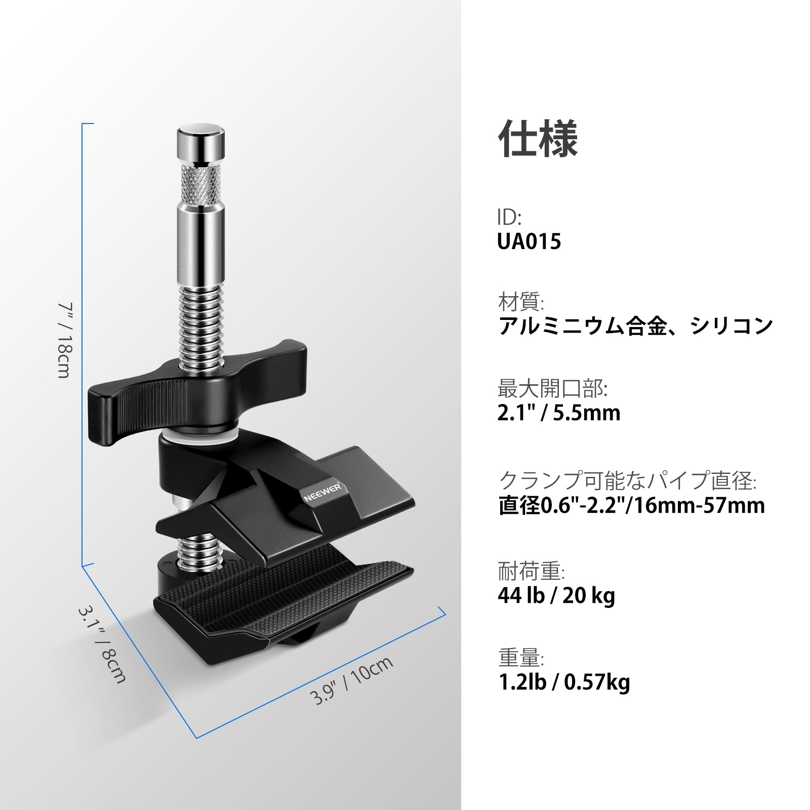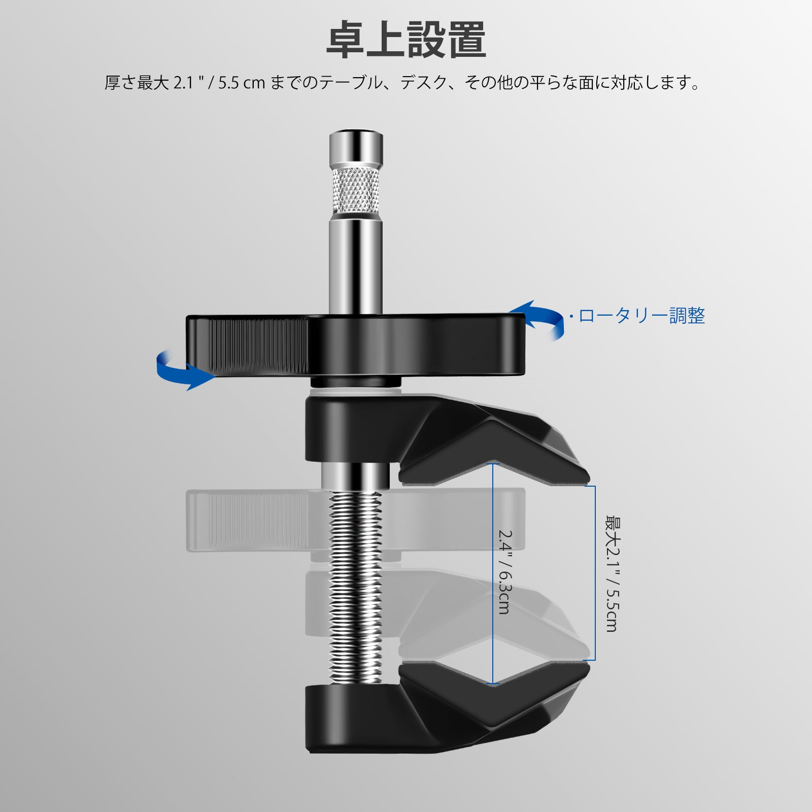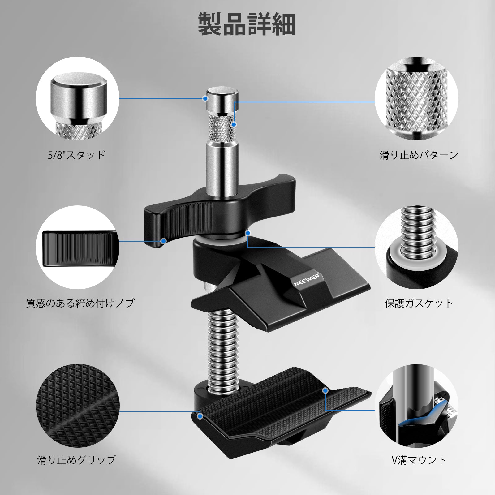 - 【確実な取り付け方法】5/8"スタッドで照明器具やアクセサリーを素早く確実に取り付け、ノブを手で締めてライトスタンド、角パイプ、Cスタンドコラム、または直径2.2"/5.5cmまでのその他の管状サポートをしっかりと固定します。