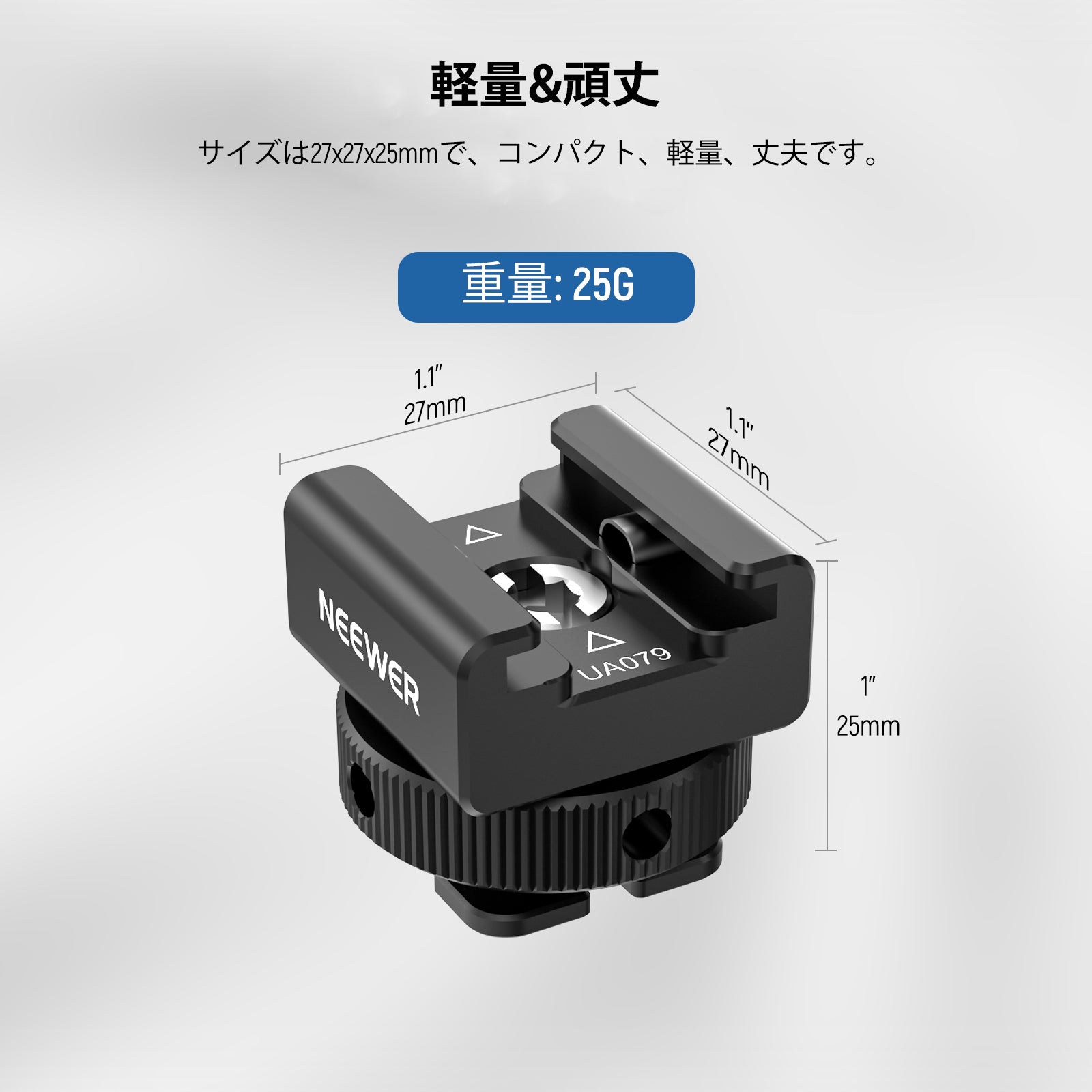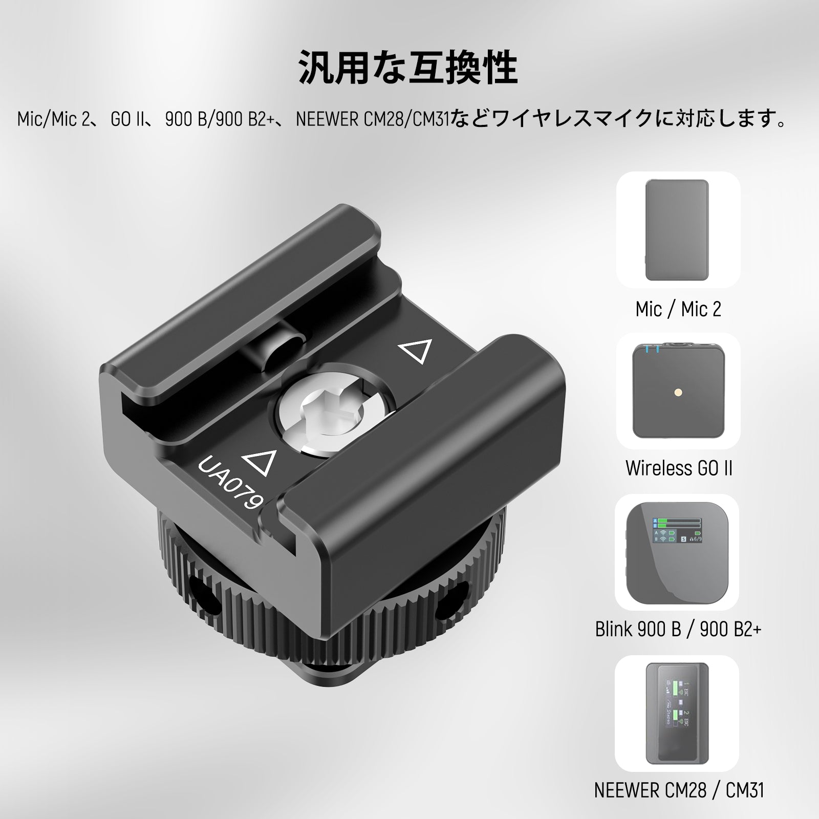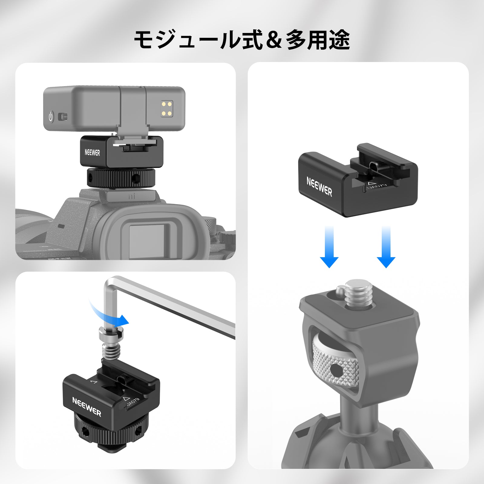 - 【汎用互換性】カメラケージ用コールドシューマウントアダプターは、コンパチブル Mic/Mic 2、GO II、900 B/900 B2+、 NEEWER CM28/CM31をはじめとするワイヤレスマイクシステム。コンテンツクリエイターやインフルエンサーにとって必要なアクセサリーです。