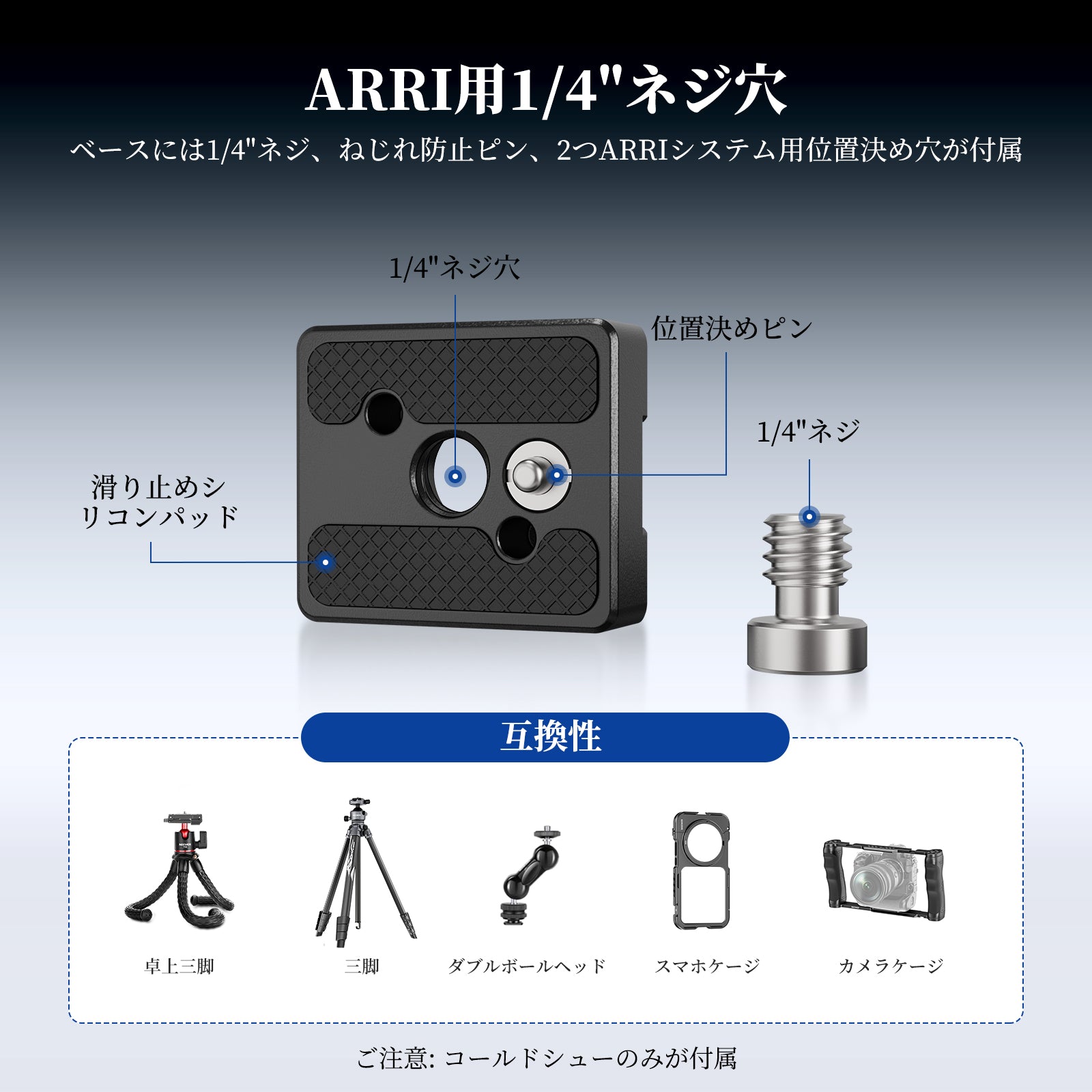 取付ポイント:1/4インチ、コールドシュー