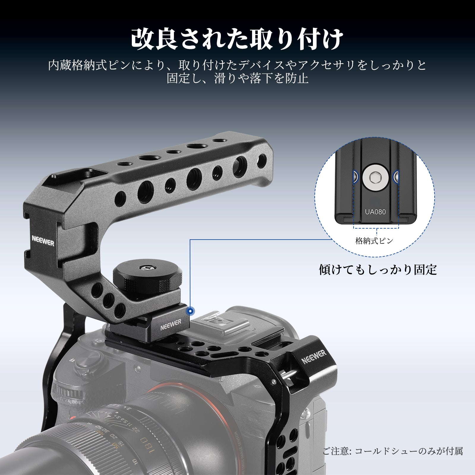 - 【コールドシューマウントアダプター】汎用なコールドシューマウントはスピードライト、モニターマウント、トップハンドル、小型LEDパネルライト、マイクなど幅広いデバイスに対応します。