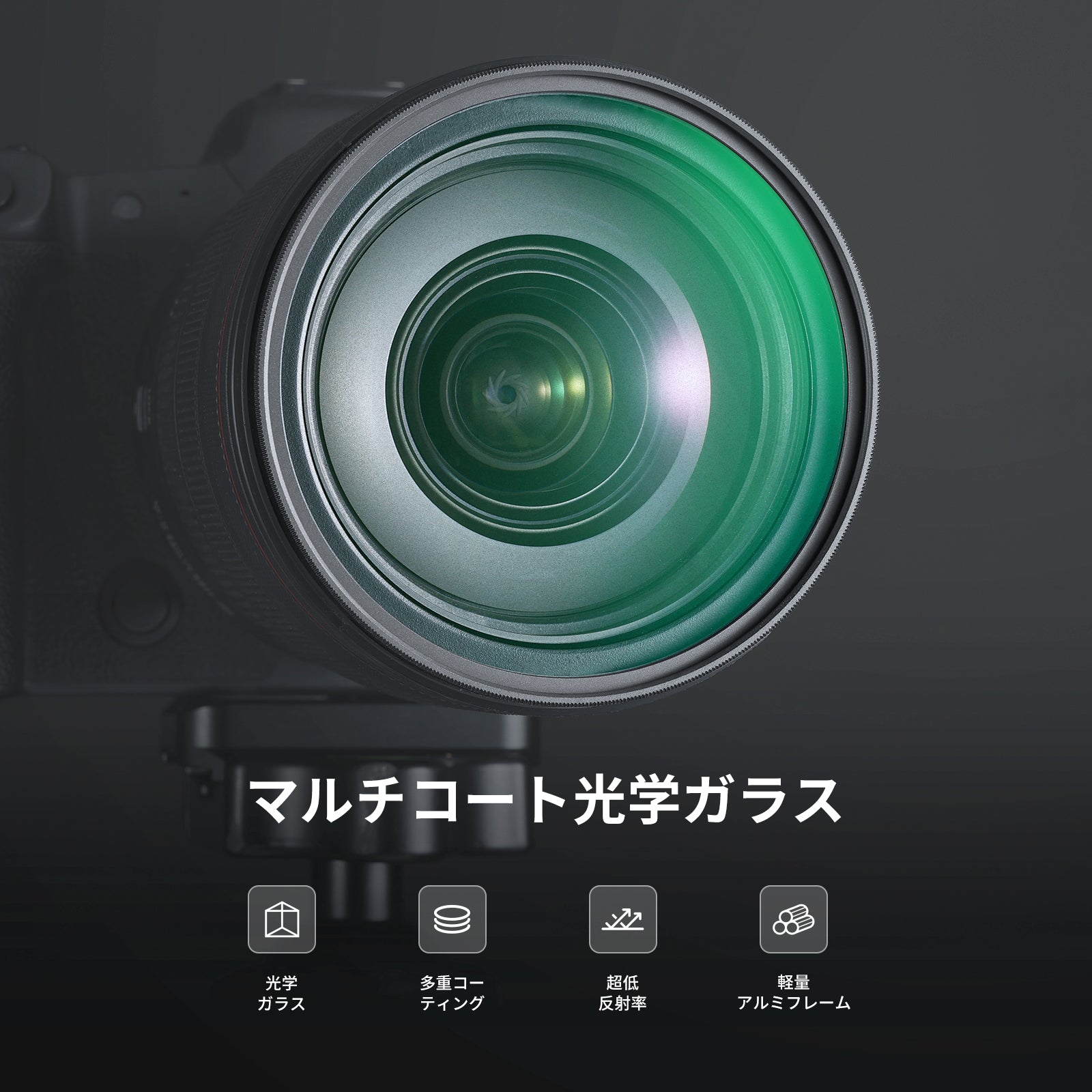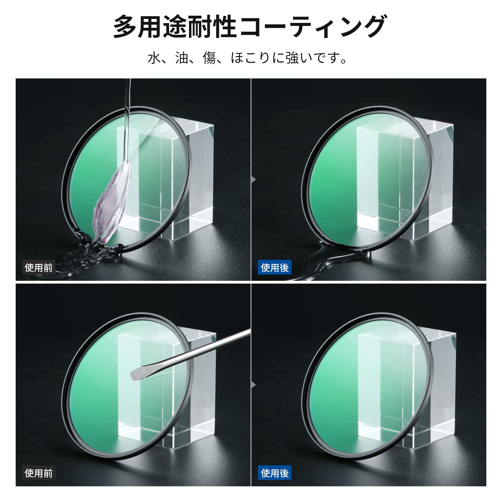 - 【多重保護コーティング】光学ガラスの両面は多重保護コーティングを施され、水、油、ほこり、傷からフィルターを保護します。日常のメンテナンスに便利なクリーニングクロスが付属しています。