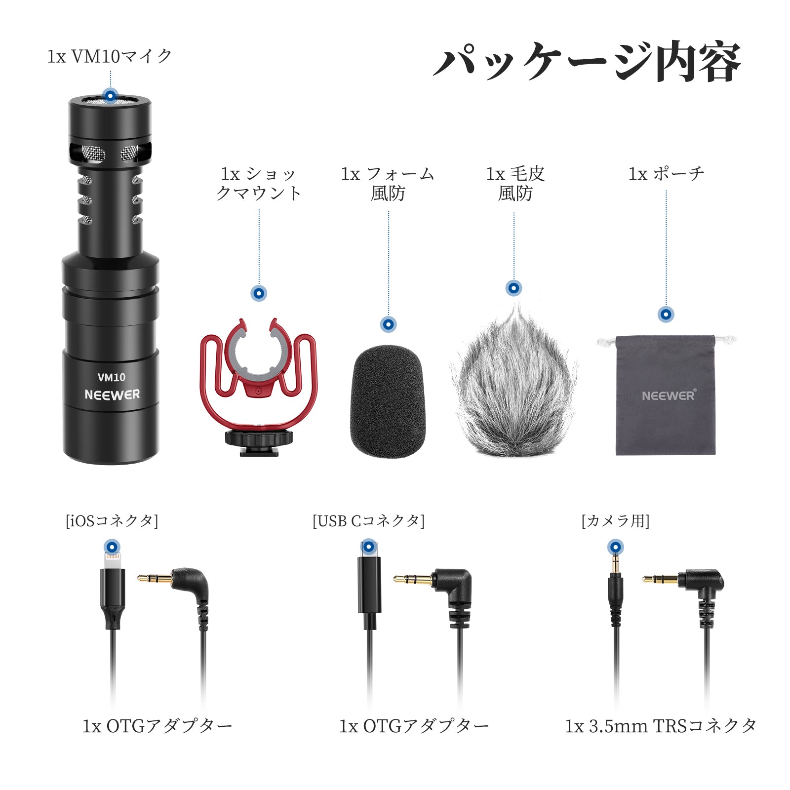 - 【3.5mm TRS & 2つのOTGアダプター】3.5mm TRSオーディオケーブルは、小型外部ビデオ録音マイクを3.5mm TRSメスオーディオジャック付き任意のカメラ機器に接続します。2つのOTGアダプターは、1つはiPhone 16、iPhone 15シリーズ、Galaxy S24 UltraなどのAndroidスマホ、USB Cラップトップと互換性があり、もう1つは14、13、12などの以前のiPhoneモデルと互換性があります。ご注意:PCで使用する場合は、マイク入力設定が必要です。