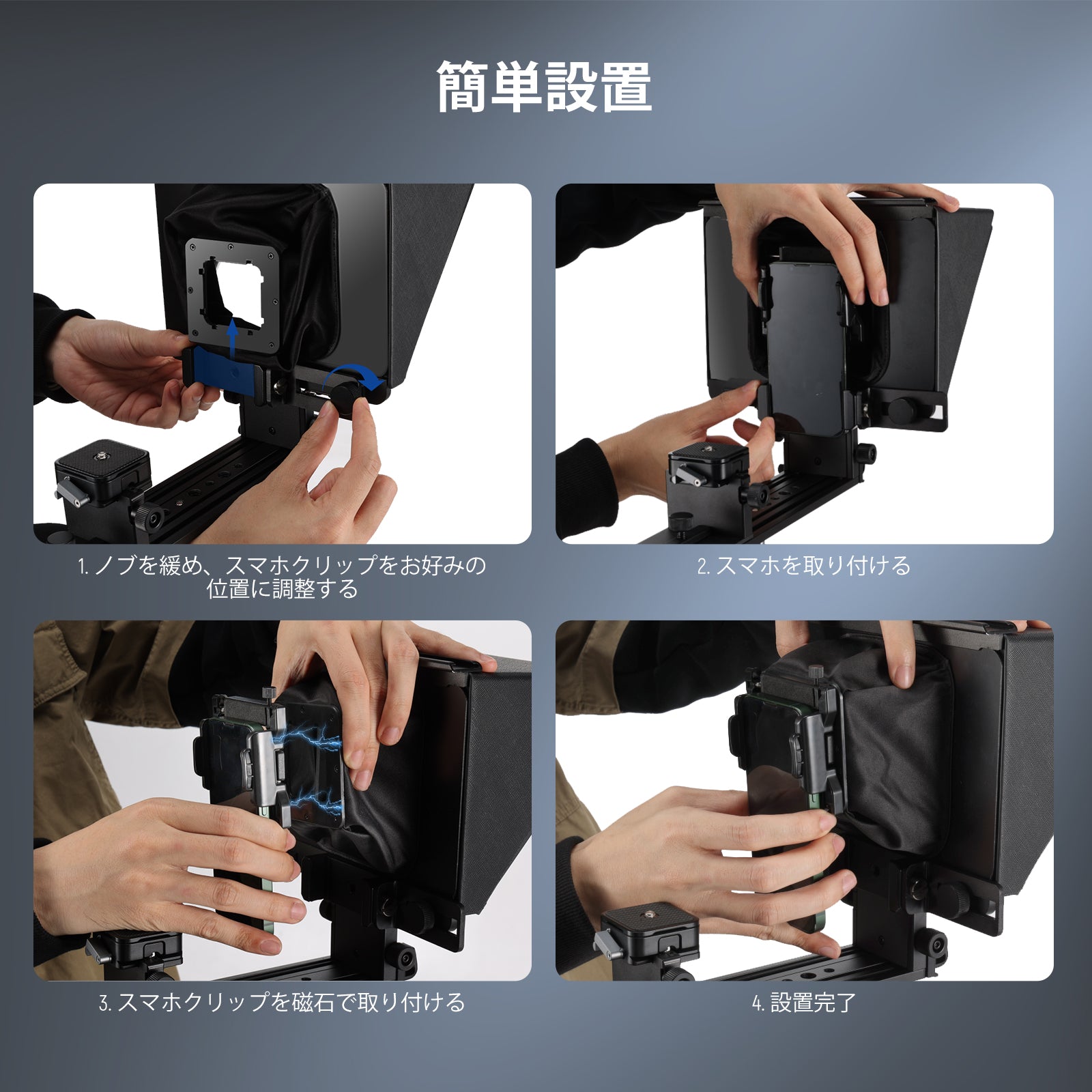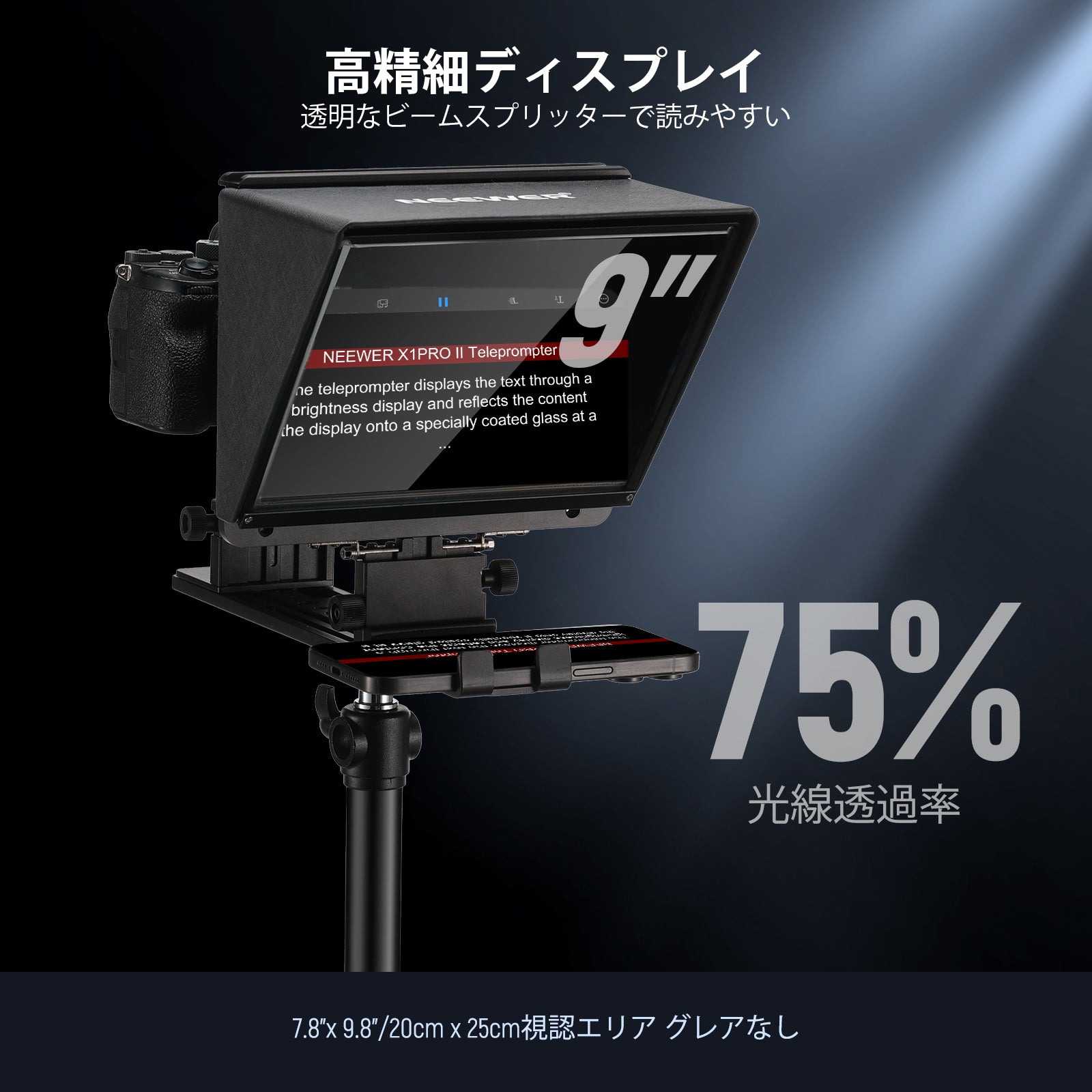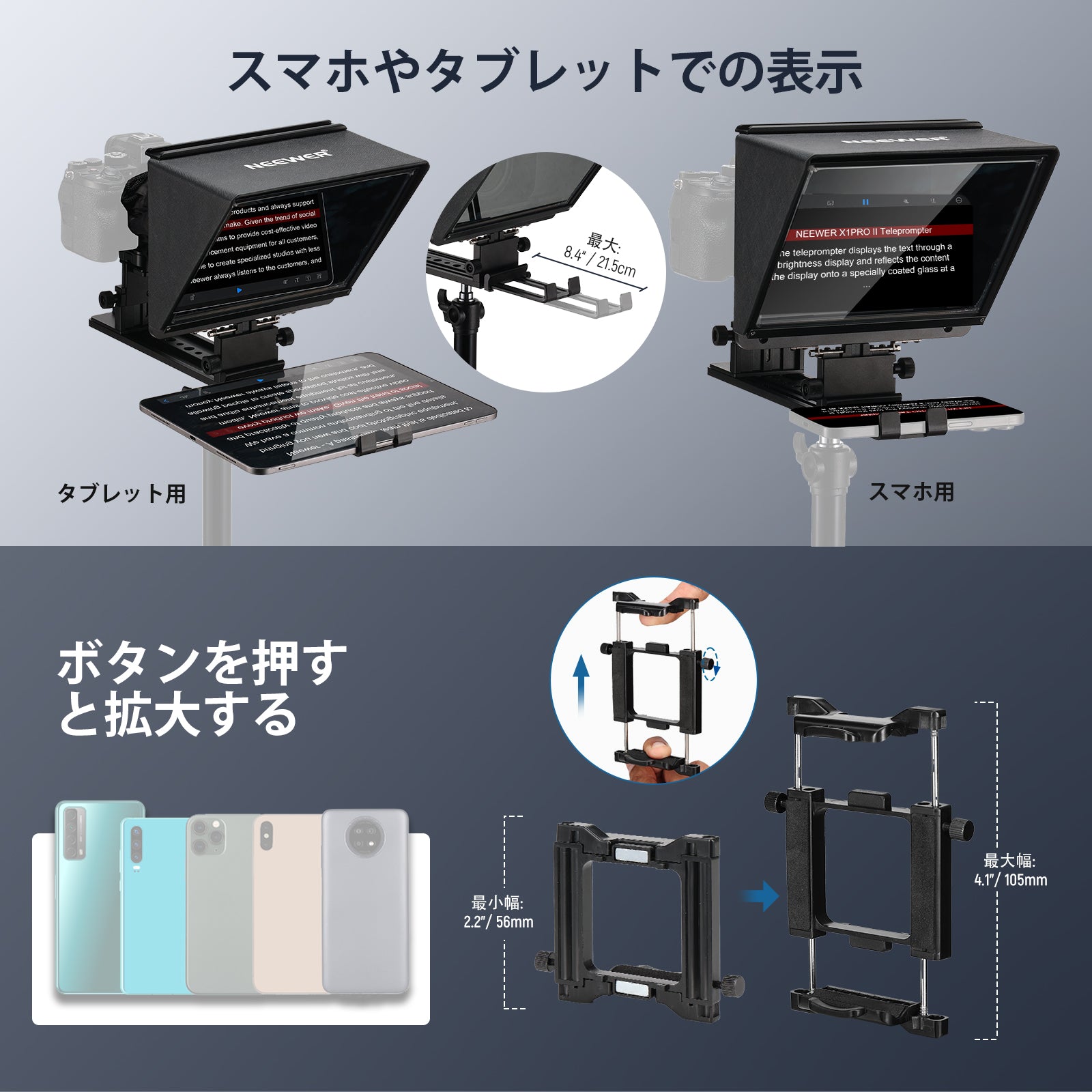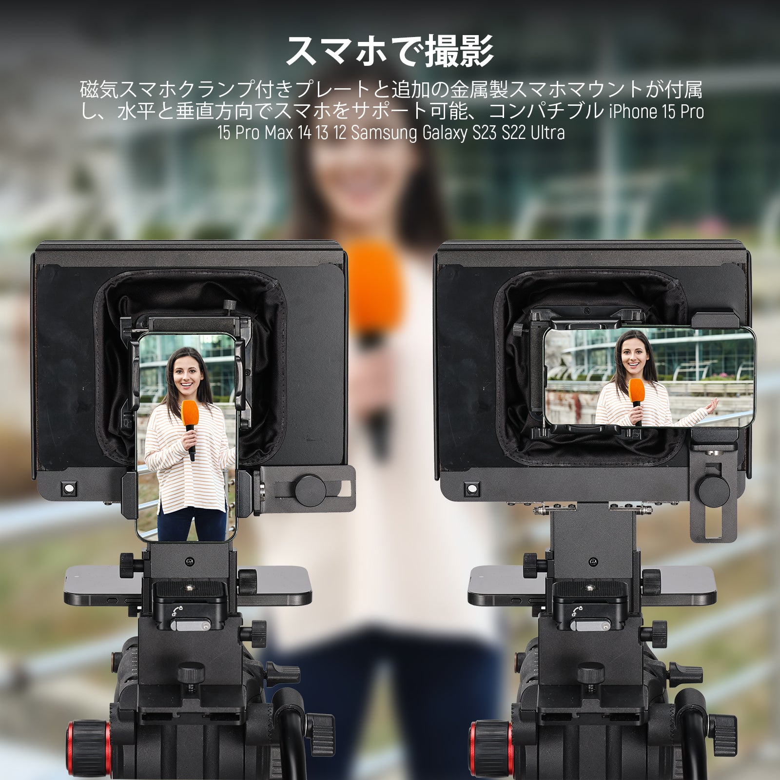- 【スマホ/カメラ用プロンプター】NEEWER X1 Pro II プロンプターはスマートフォンやカメラを使用して自然で魅力的なビデオを録画するのに最適です。 磁気スマホクランプ付きのプレートと、スマホを水平方向と垂直方向にサポートする追加の金属製スマホマウントが付属しており、iPhone 16 Pro 16 Pro Max 15 14 13 12 Samsung Galaxy S23 S22 Ultraと互換性があります。 レンズフードはさまざまなカメラに適用でき、焦点距離 ≥28mm の広角レンズをサポートします。