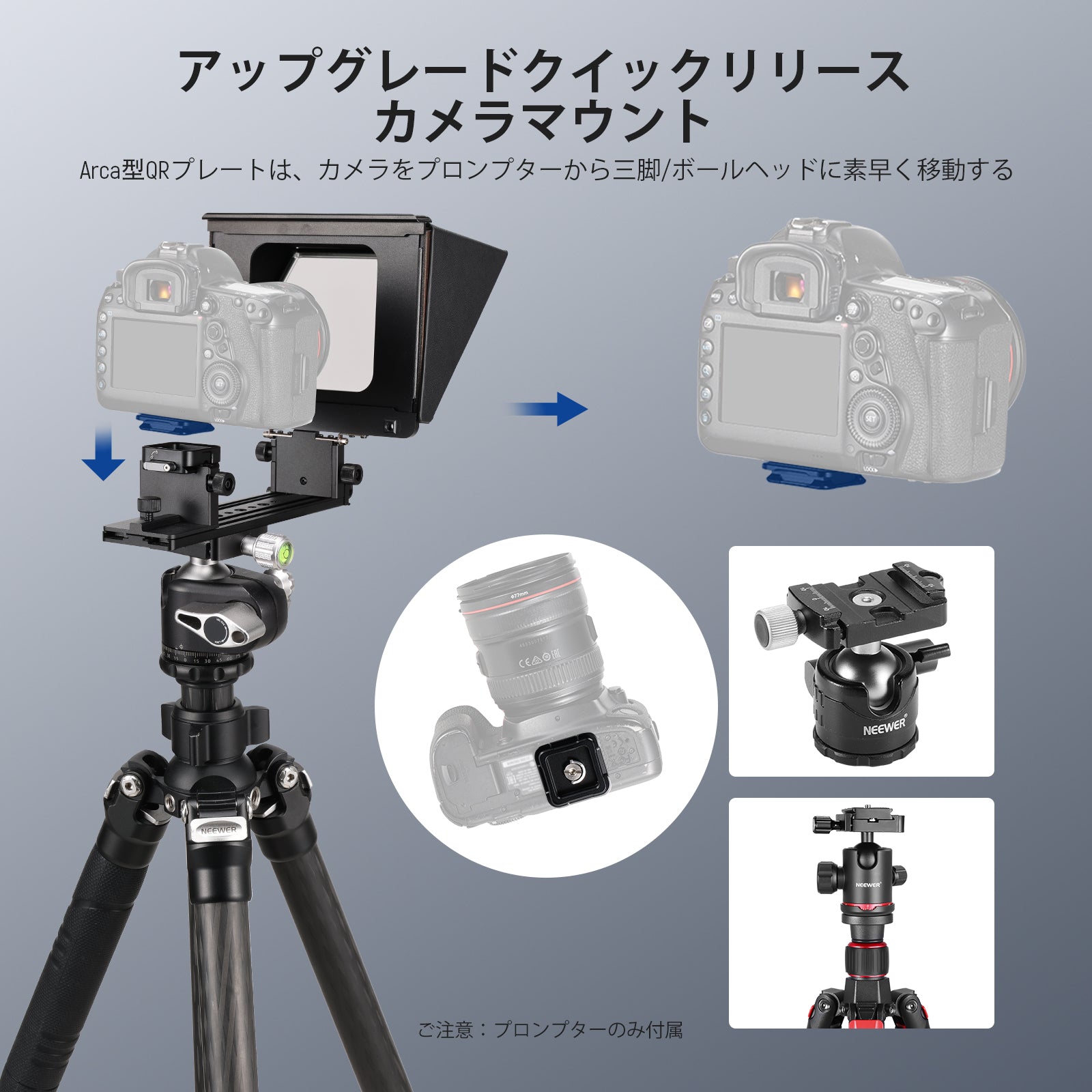 - 【アップグレードされたクイックリリースカメラマウント】NEEWER CA009 Arca型クイックリリースカメラマウントアダプターを使用すると、カメラを位置合わせなしで上からスナップでしっかりとロックできます。Fujifilm Lumixカメラの垂直方向0.8"/2.1cm、水平方向5.9"/15cmの調整が可能で、プロンプターから三脚雲台や RS2 RSC2 RS3 RS3 Pro ジンバルへのシームレスな転送により、さまざまな撮影が可能です。