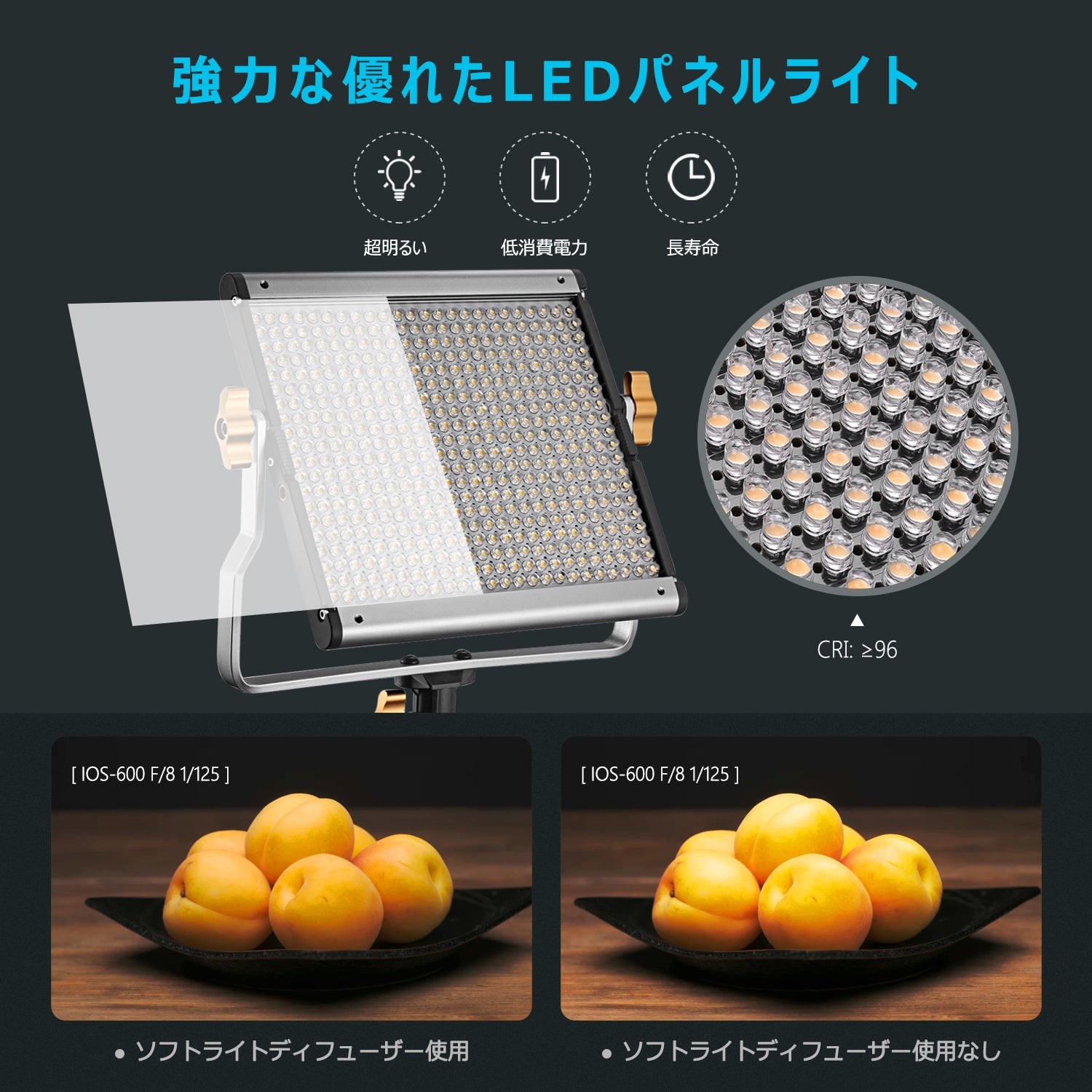 - 480 LED 球:白と黄それぞれ240個長持ちのLED電球があり、このライトは、タングステン-日光3200-5600Kからの可変ホワイトバランスを照らします。