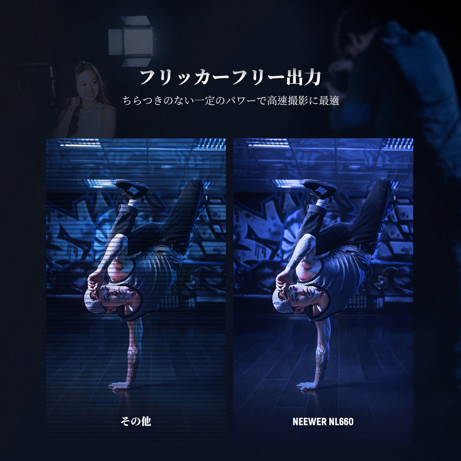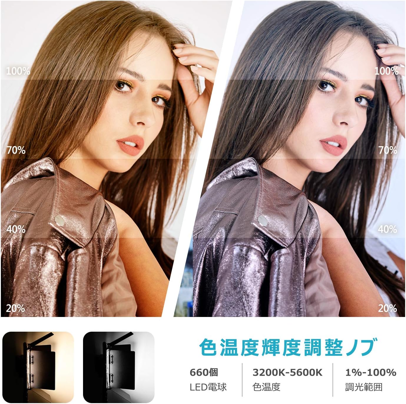 - 660 LEDバルブ:330個の白色と330個の黄色長持ちするLED電球で、タングステン-昼光3200K-5600K色温度からの可変ホワイトバランスを照らします。