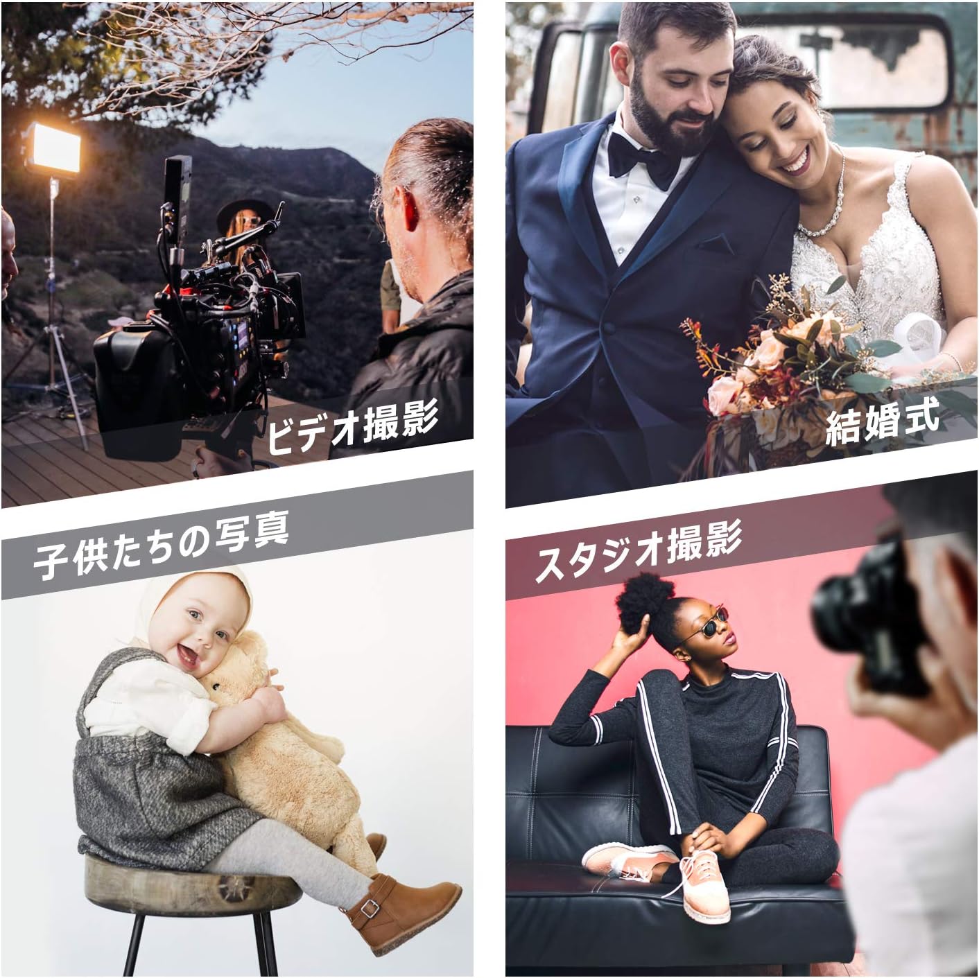 - 高材質と多機能:ビデオライトは優れたアルミ合金製で、シンプルでエレガントな外観を持ちます。ライトスタンド、地面または机の上に置くことができます。ご利用者の作業に複数の撮影構想を提供します。