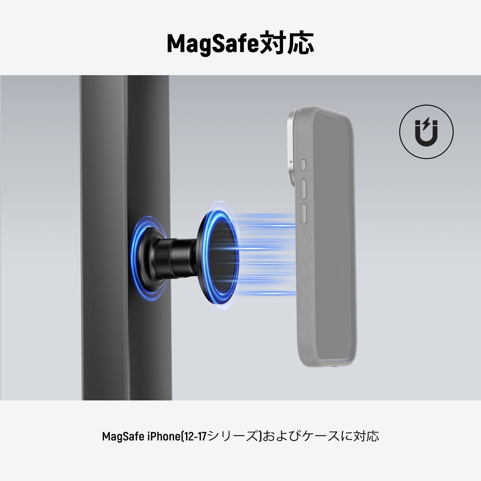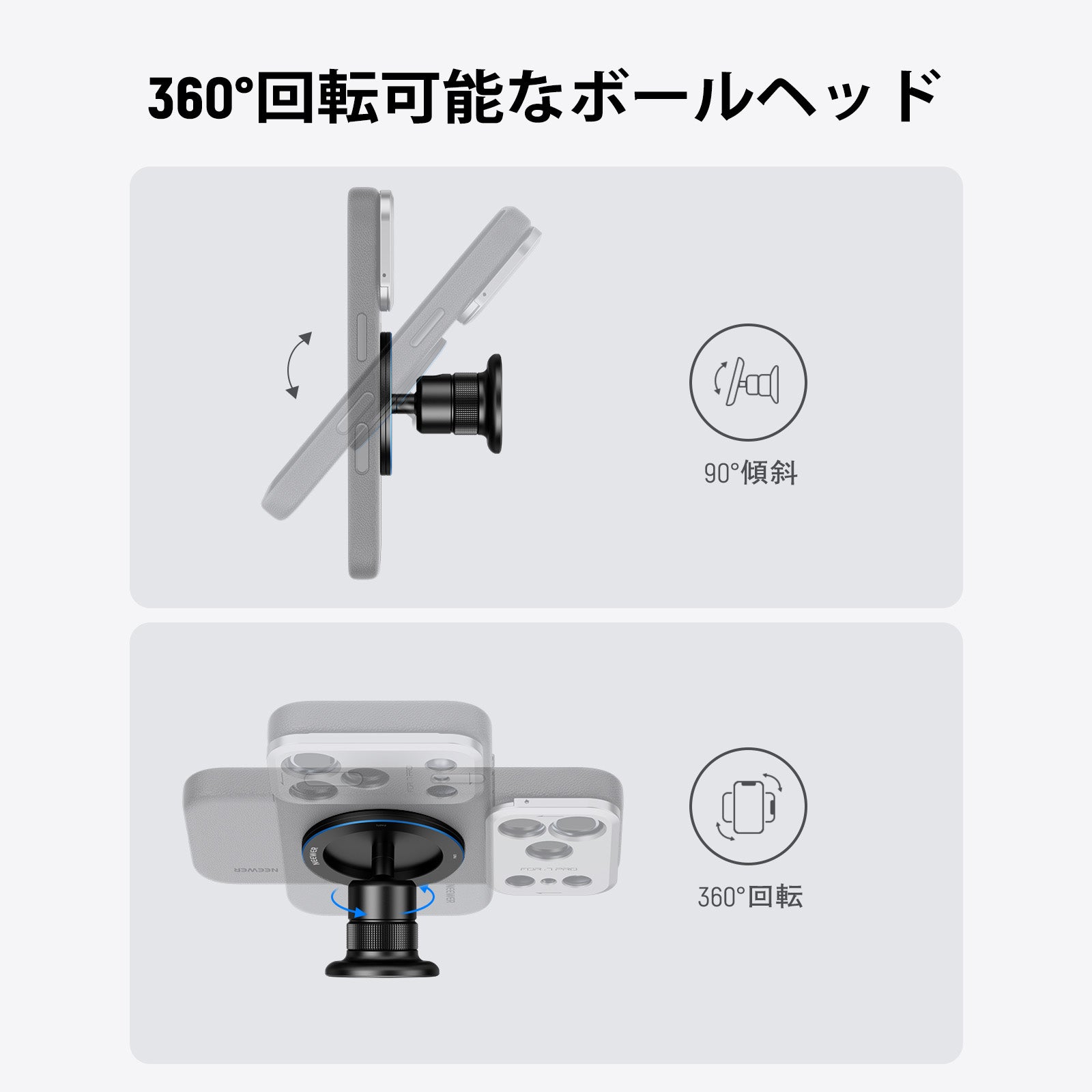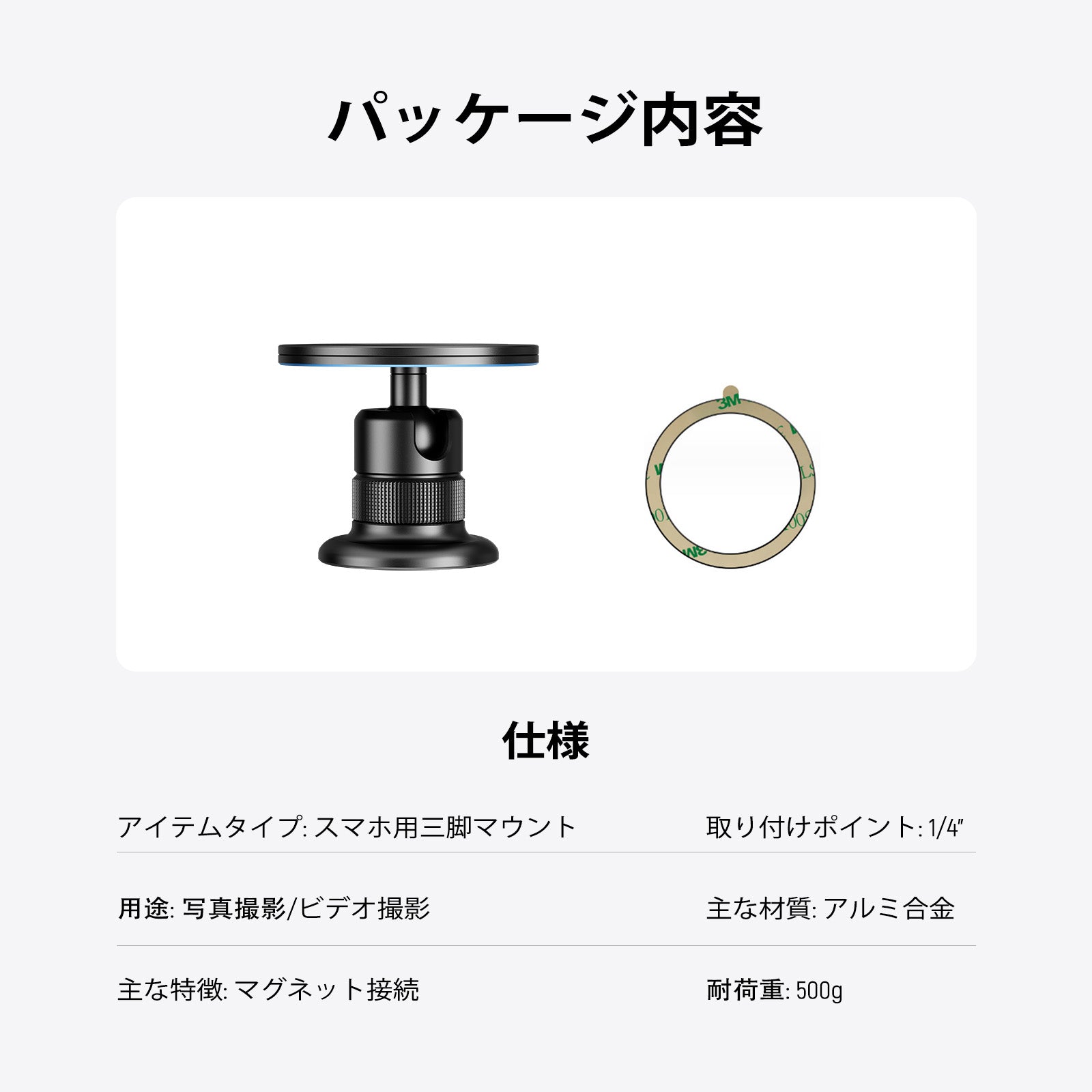 - 【MagSafe対応】スマホ三脚マウントホルダーはiPhone(16、15、14、13、12シリーズ)およびMagSafeケースに対応しています。滑り止めゴムパッドが傷から保護し、スマホのカメラ撮影、動画撮影、映画鑑賞、ハンズフリー撮影に最適です。