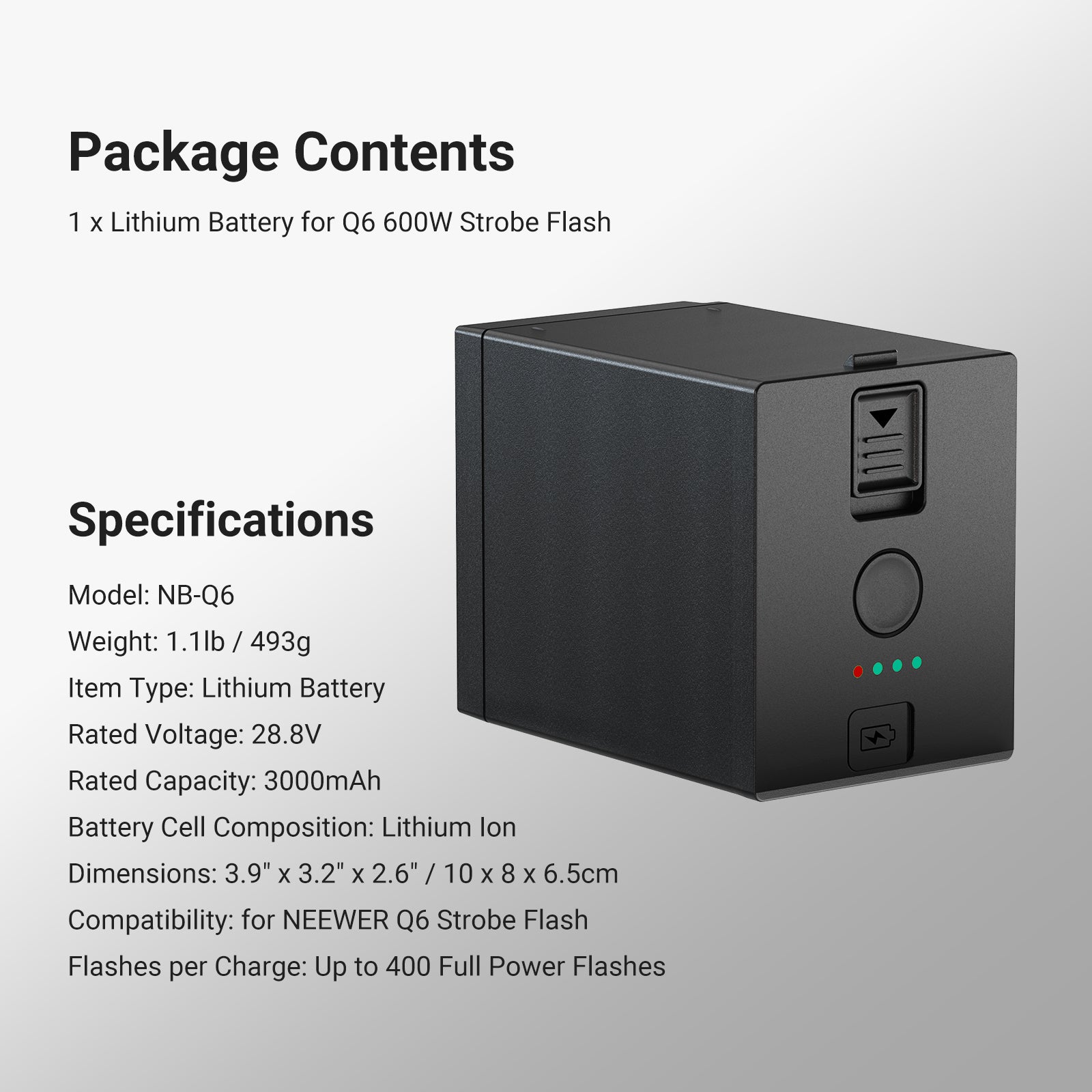 NEEWER NB-Q6 バッテリーパック 28.8V/3000mAh Q6フラッシュ専用
