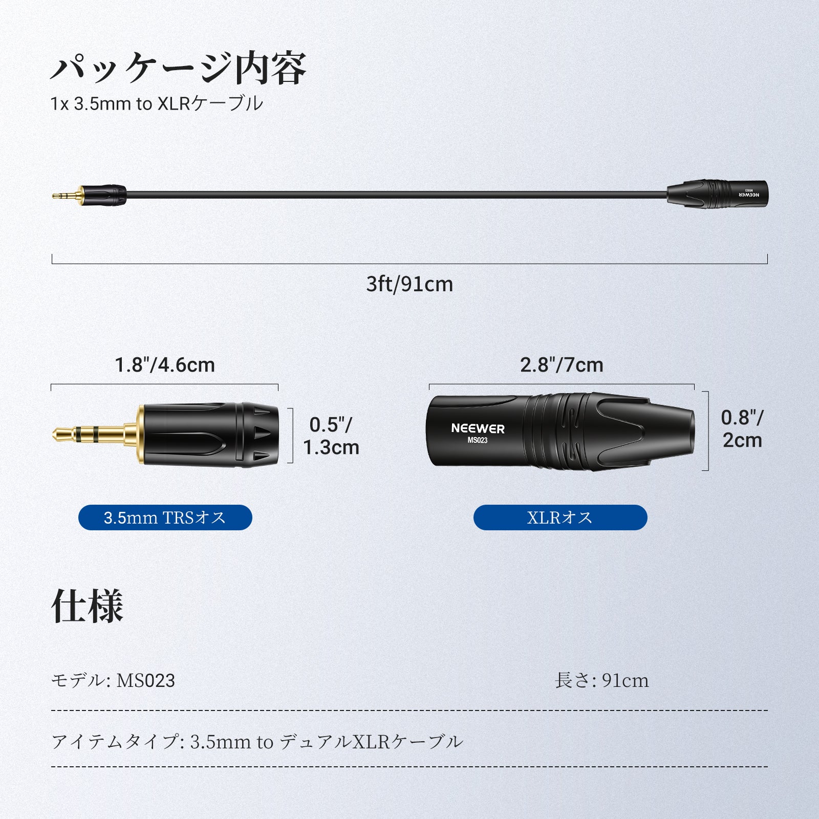 NEEWER MS023 3.5mm to XLRケーブル