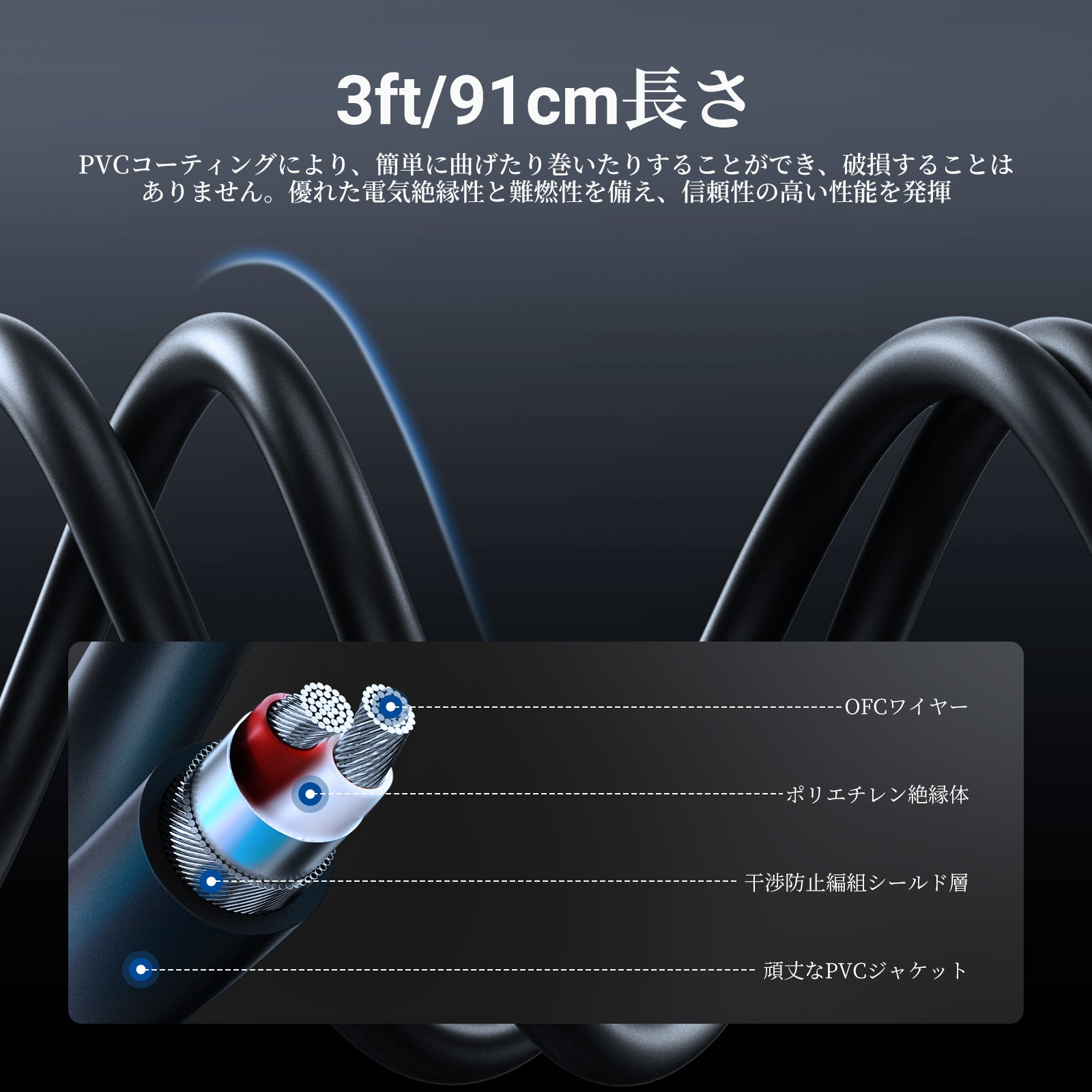 • 【プロな音質】3.5mm オーディオケーブルは、銅導体を個別に絶縁し、編組銅シールドによりハムノイズやバズノイズを抑え、クリアな音声出力を実現します。