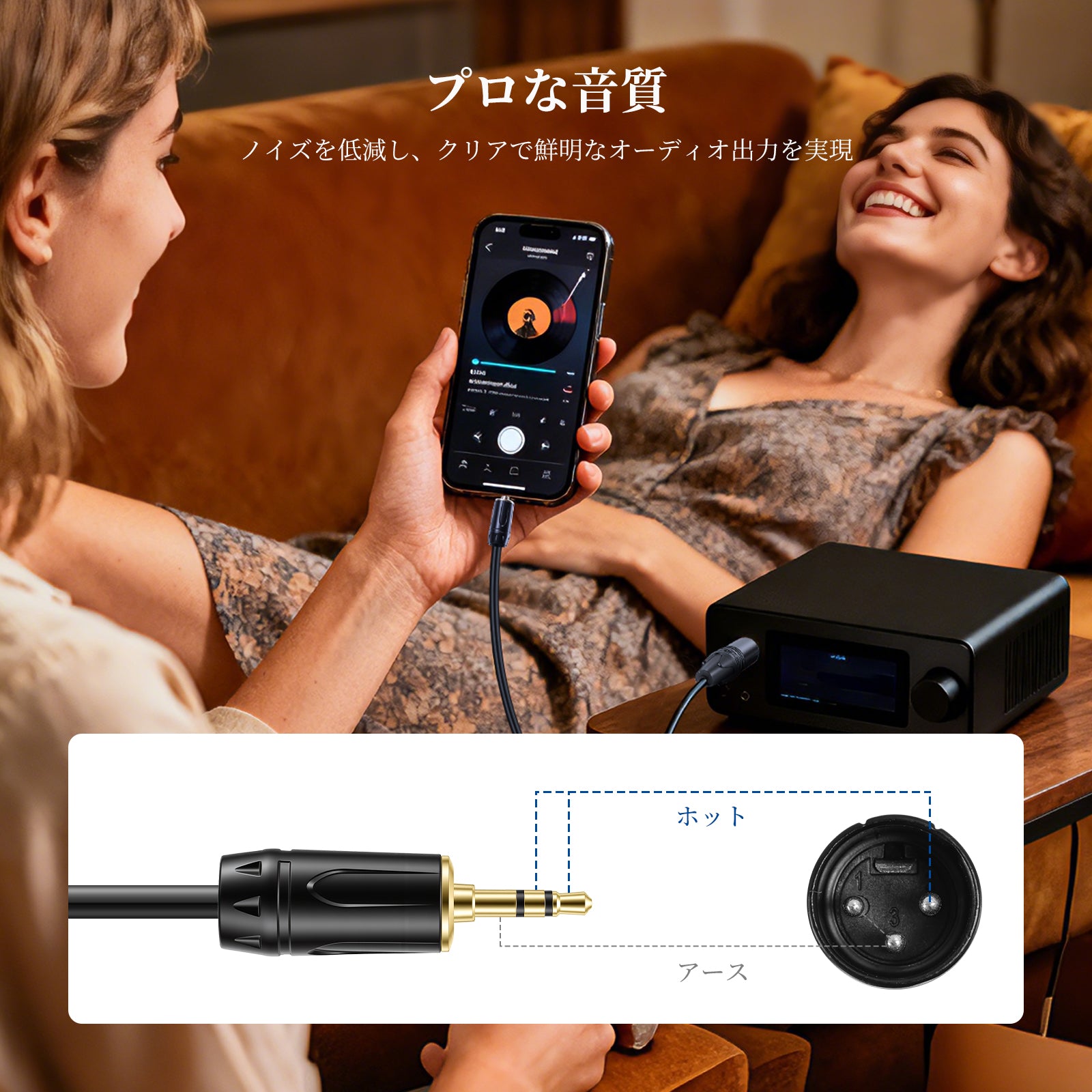 • 【ケーブル長 91cm】長さ91cmアンバランス XLR to 3.5mm オスケーブルは、柔らかいPVC ジャケットを採用し、すっきりとしたデザインで、卓上、スタンド、ミキサーなどに柔軟に設置できます。