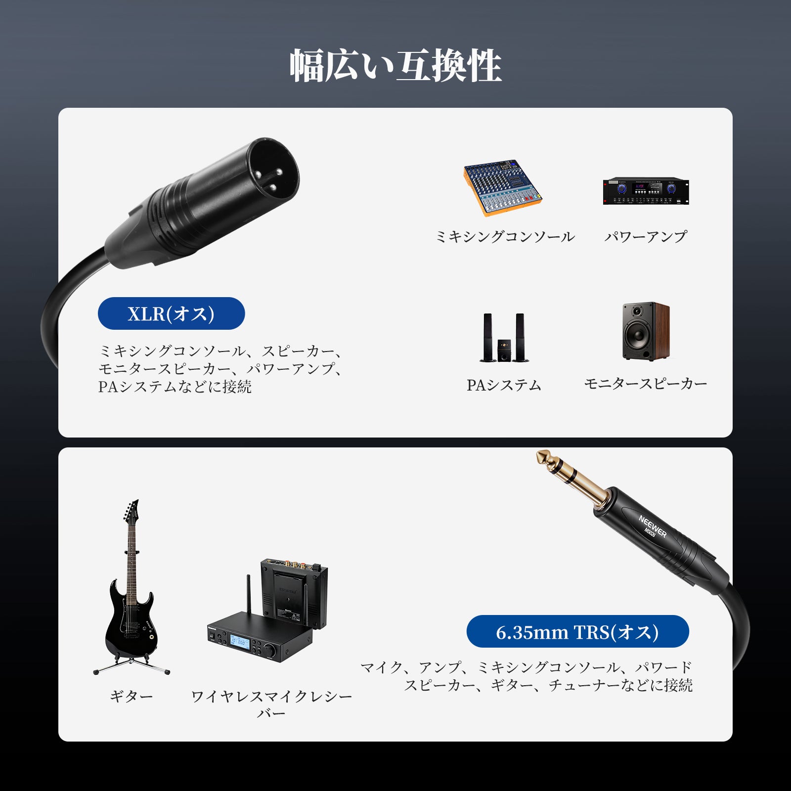 - 【ケーブル長91cm】長さ91cmバランスXLR to 1/4インチTRSケーブルは、柔らかいPVCジャケットを採用し、すっきりとしたデザインで、卓上、スタンド、ミキサーなどに柔軟に配置できます。
