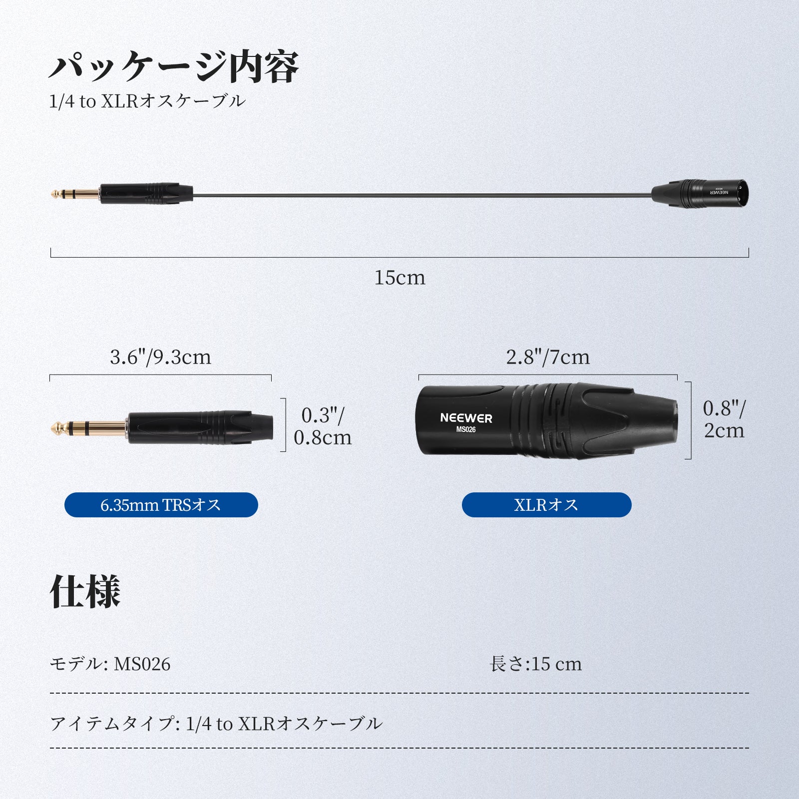 NEEWER MS026 6.35mm 1/4 TRS to XLR オスケーブル