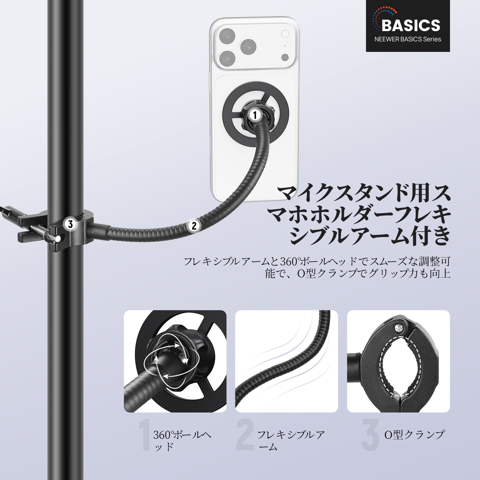 NEEWER BASICS MS009/MS040 スマホホルダー マイクスタンド用 フレキシブルアーム付き