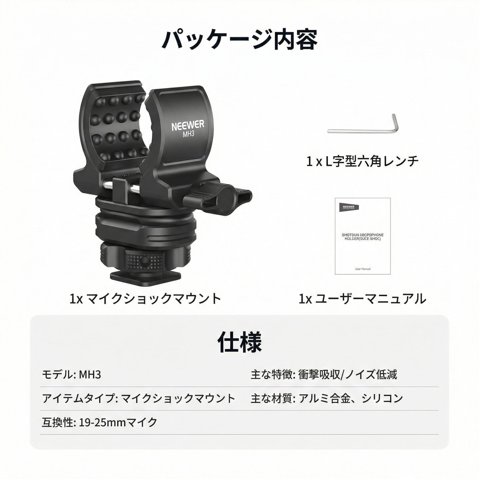 NEEWER MH3 マイクホルダー コールドシューアダプター付き