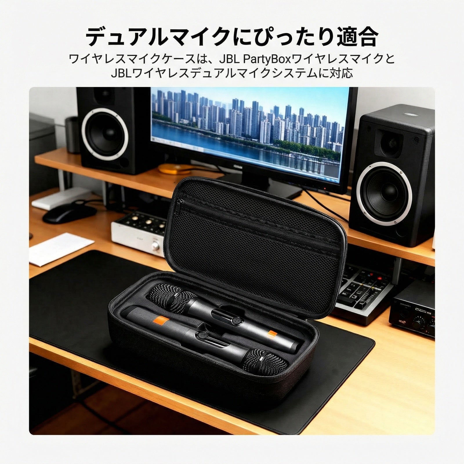 - 【デュアルマイクにぴったりフィット】ワイヤレスマイクケースは、JBL Party BoxワイヤレスマイクおよびJBLワイヤレスデュアルマイクシステムに対応しており、マイクをぐらつかずに収納できる専用コンパートメントを備えています。