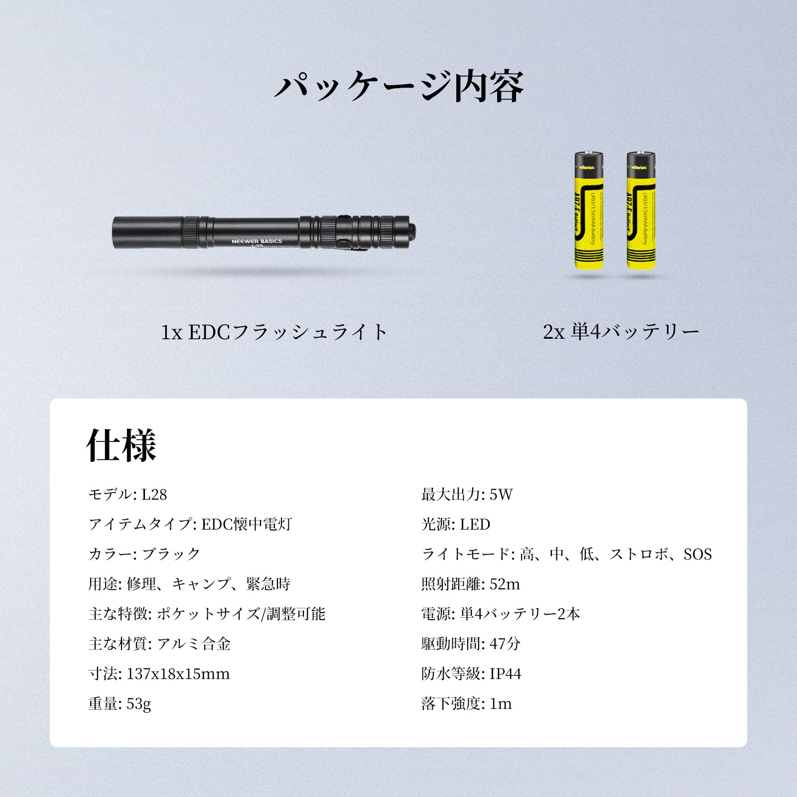 NEEWER BASICS L28 5W 小型 EDC懐中電灯