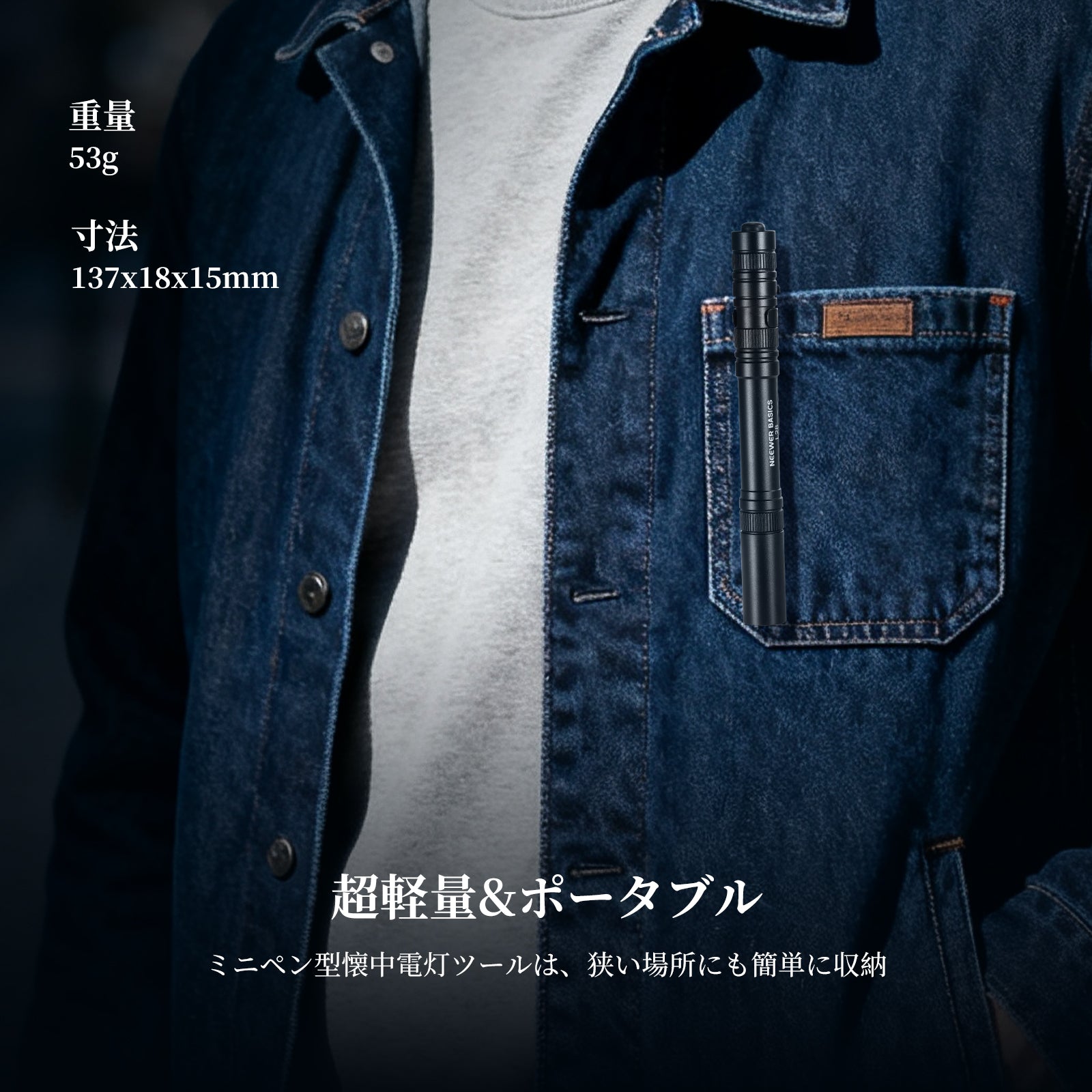 - 【小型超軽量&持ち運び簡単】電池込みでわずか53g、サイズは137×18×15mmのペン型EDCフラッシュライトは、軽量コンパクト懐中電灯としてポケットやバッグに収納可能。細身のデザインで狭い隙間にもすっと収まり、メンテナンス時の細かい作業もストレスなく行えます。最大121ルーメンの光束と52mの照射距離を実現。家庭用はもちろん、キャンプ、修理作業、狩猟、男女問わず旅行や夜間の外出、日常点検、緊急時など、あらゆるシーンで活躍する小型ハンドヘルドライトです。