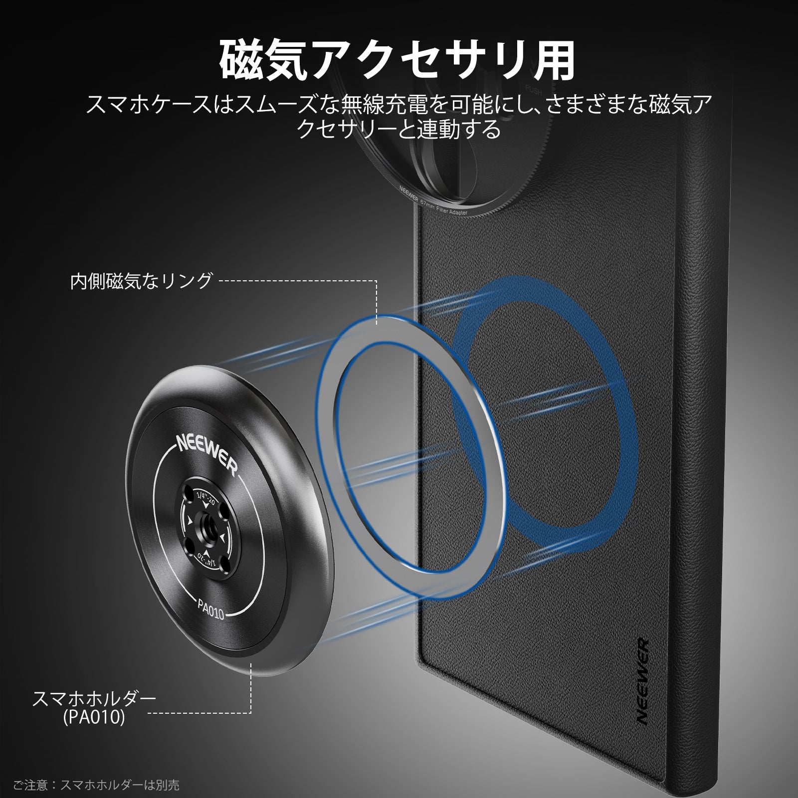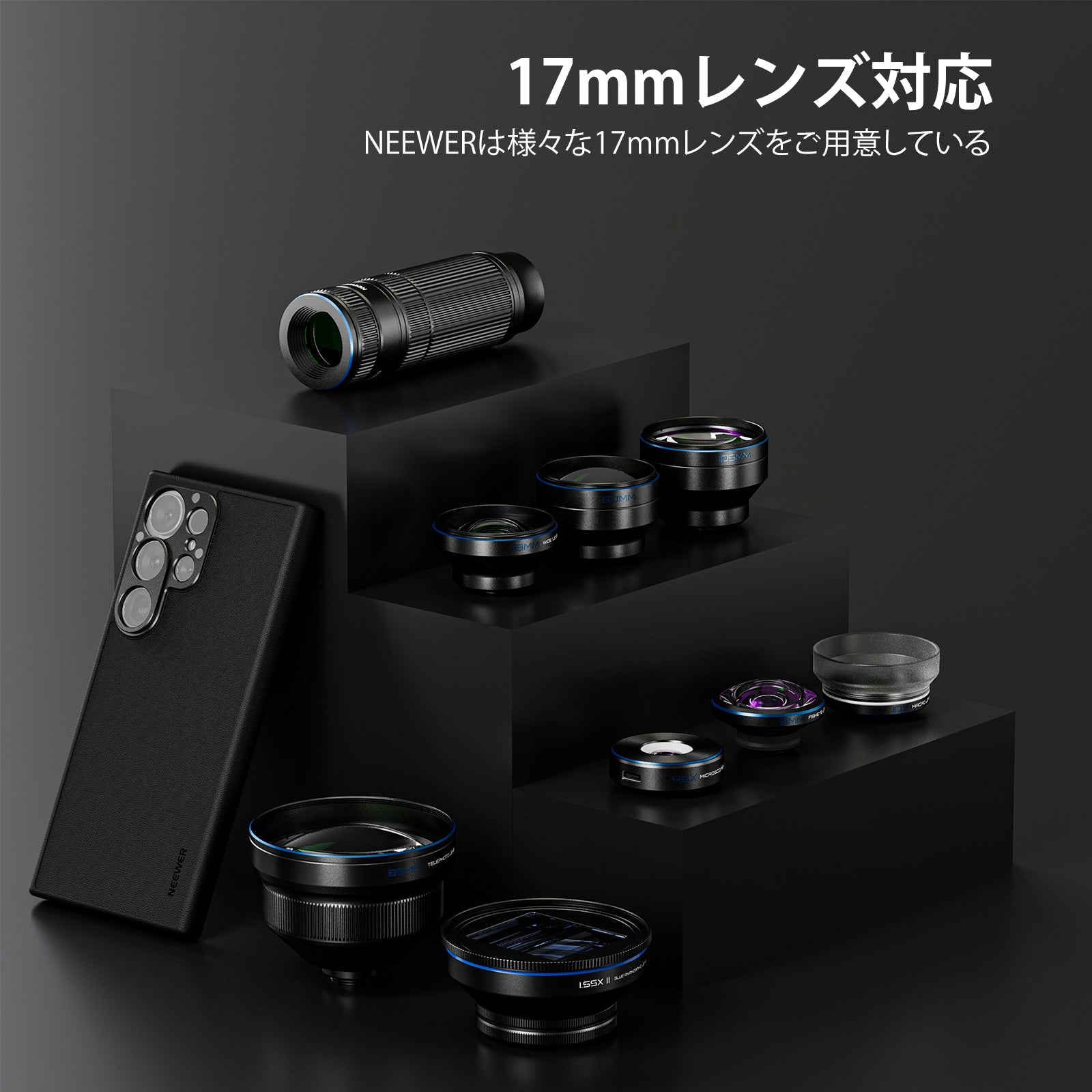 【NEEWERもっと見る】NEEWER PA010磁気スマホ三脚マウントと幅広い17mmネジレンズ(105mmマクロ、10倍マクロ、8mm魚眼、LEDライト付き45倍顕微鏡、7倍望遠、60mm望遠、18mm広角、1.55倍ブルーアナモルフィック)をご検討ください。