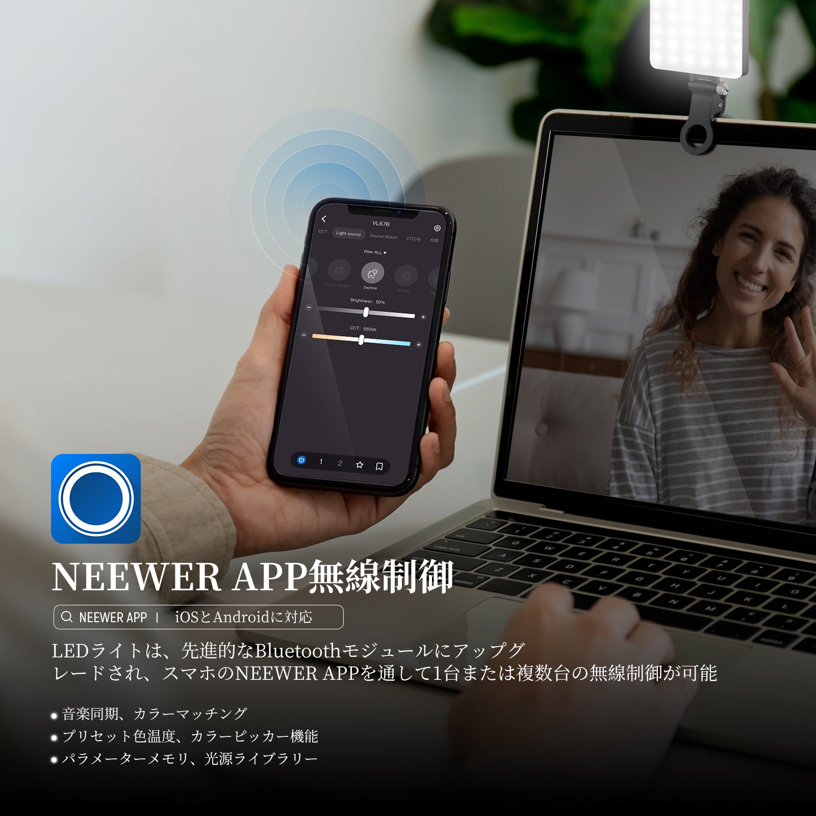 - 【スマートアプリ制御&鮮やかなFXモード】アップグレードされたLEDライトは、NEEWERアプリを介して複数のユニットを無線制御できる高度なBluetoothモジュールを搭載しています。RGBモード、音楽同期、カラーマッチングなどの機能に加え、光源ライブラリへのアクセスとパラメータメモリによる迅速な照明設定が可能です。ライトニング、パパラッチ、花火など、12種類のFXモードでカスタマイズ可能な照明効果を実現し、OLEDディスプレイと使いやすい物理ボタンも備えています。