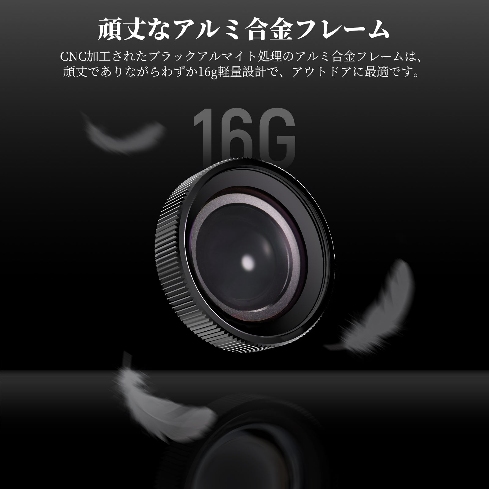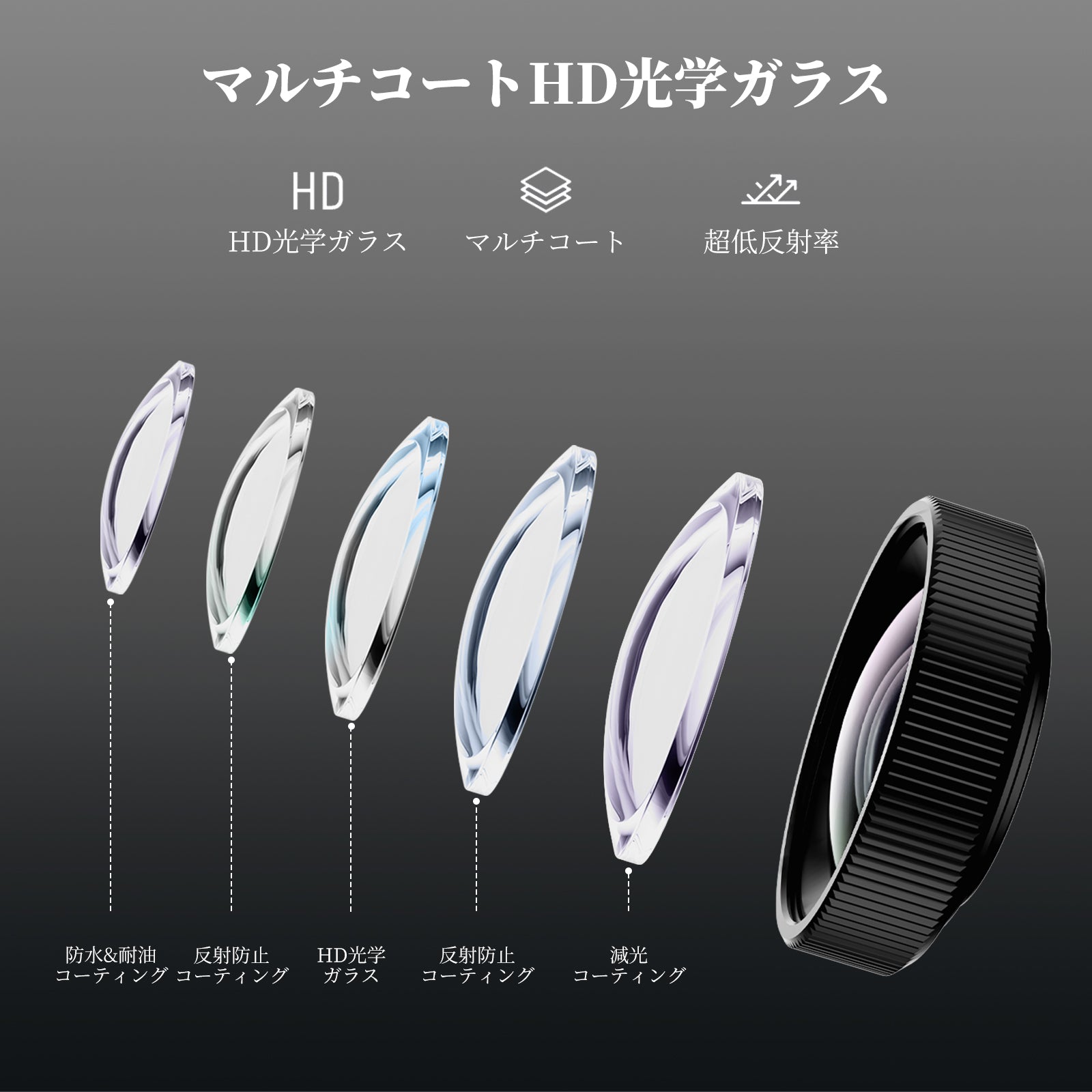 - 【マルチコートHD光学ガラス】HD光学ガラスは1群2枚のレンズを搭載し、高い透明度を実現します。多重保護コーティングは反射率の低く、汚れや指紋がつきにくく、グレアやゴーストを効果的に低減します。