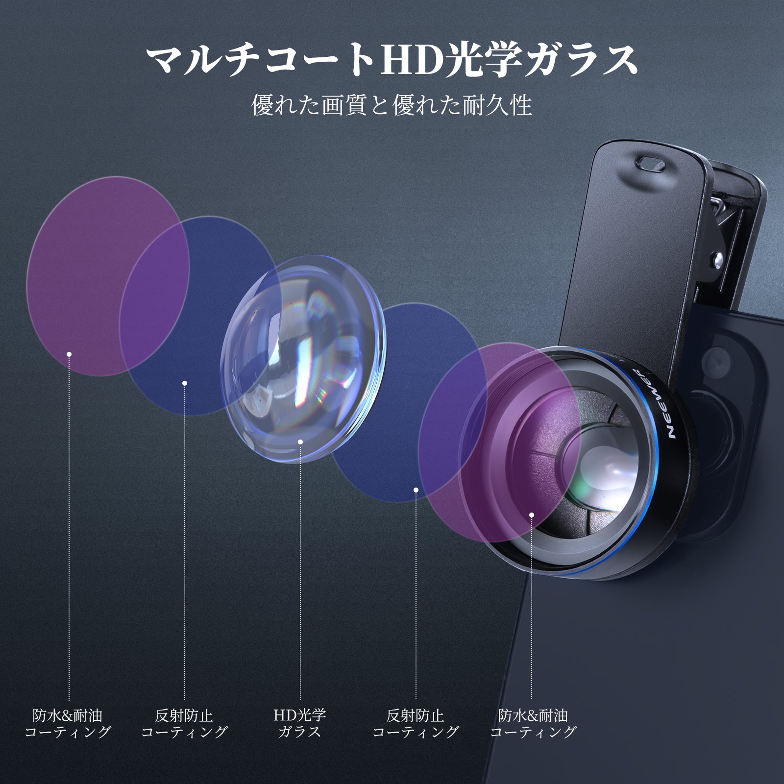 - 【優れた光学性能】HD光学ガラス(樹脂製ではありません)は2群2枚レンズを搭載し、レンズグレア、反射、ゴーストを最小限に抑え、優れた透明度を実現します。複数保護コーティングにより、水、指紋、傷に強いです。クリーニングクロスが付属し、お手入れにも便利です。