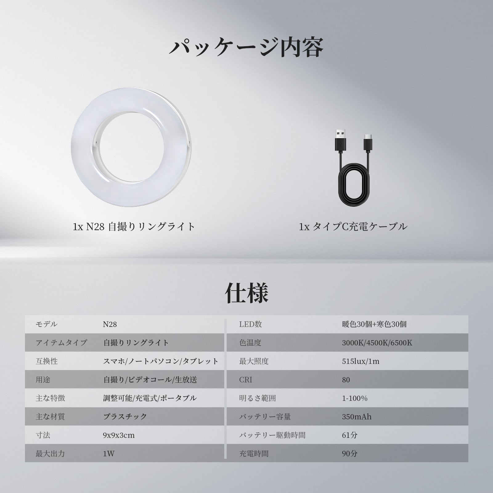 - 【小型軽量&ポータブル】N28 スマホ用LEDリングライトは、わずか9.5×9.5×3.5cm、重量約54gの超コンパクト設計。コンテンツクリエイターやSNSインフルエンサー、メイクアップアーティスト、旅行ブロガーなど、質の高い映像を求める方々にとって必須のスマホ照明ツールです。