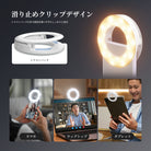 - 【滑り止めクランプ設計】最大18mmまでの厚みに対応するシリコン製滑り止めパッドを備えたクリップ式リングライトは、iPhone、iPad、Androidなど各種スマートフォンやタブレットを対応し、画面を傷つけることなく確実に固定できます。デスクやノートPC、ウェブカメラへの取り付けにも対応し、Zoom会議やポッドキャスト、FaceTime、在宅勤務時のビデオ会議など、多様なシーンでプロのような照明環境を実現します。