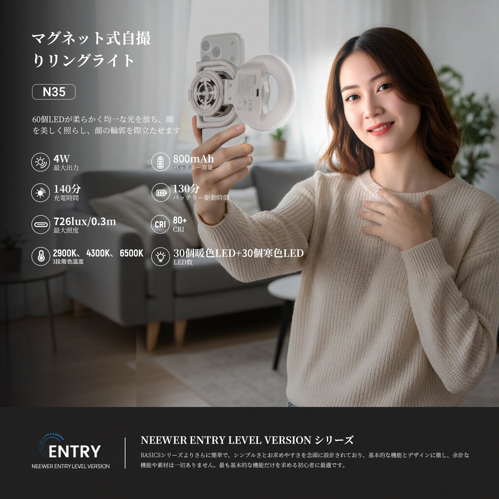 NEEWER ENTRY LEVEL VERSION N35/N36 マグネット式 自撮りライト