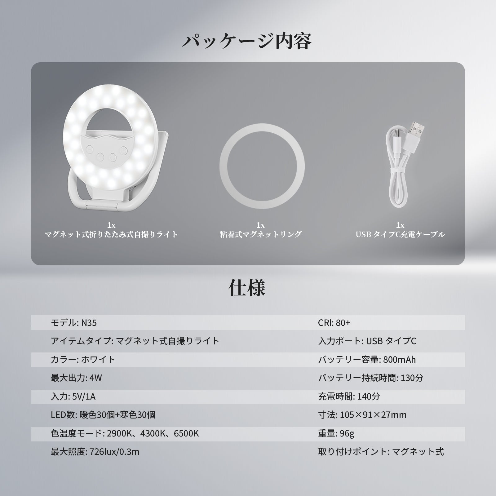 製品タイプ:マグネット式セルフィーライト