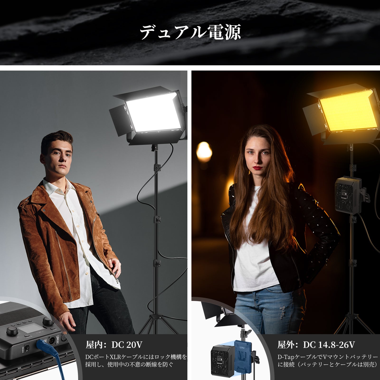 - 【デュアル電源対応】付属の20VアダプターとAC電源コードでコンセントから給電可能。コンセントが利用できない場合には、別売りのVマウントバッテリー(14.8V~26V)とDタップ-4ピンケーブルを使用して駆動でき、屋外撮影でも安心。DCポートはロック式設計で、使用中の不慮の脱落を防止します。