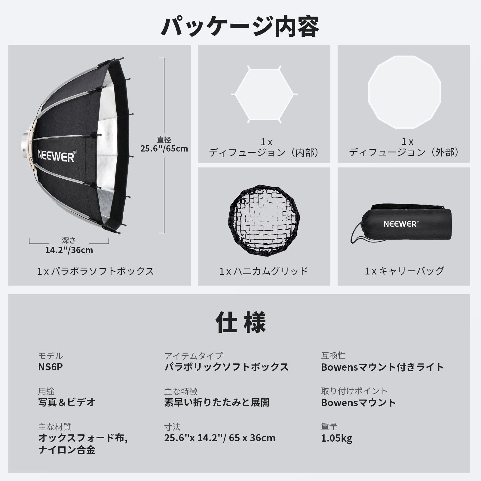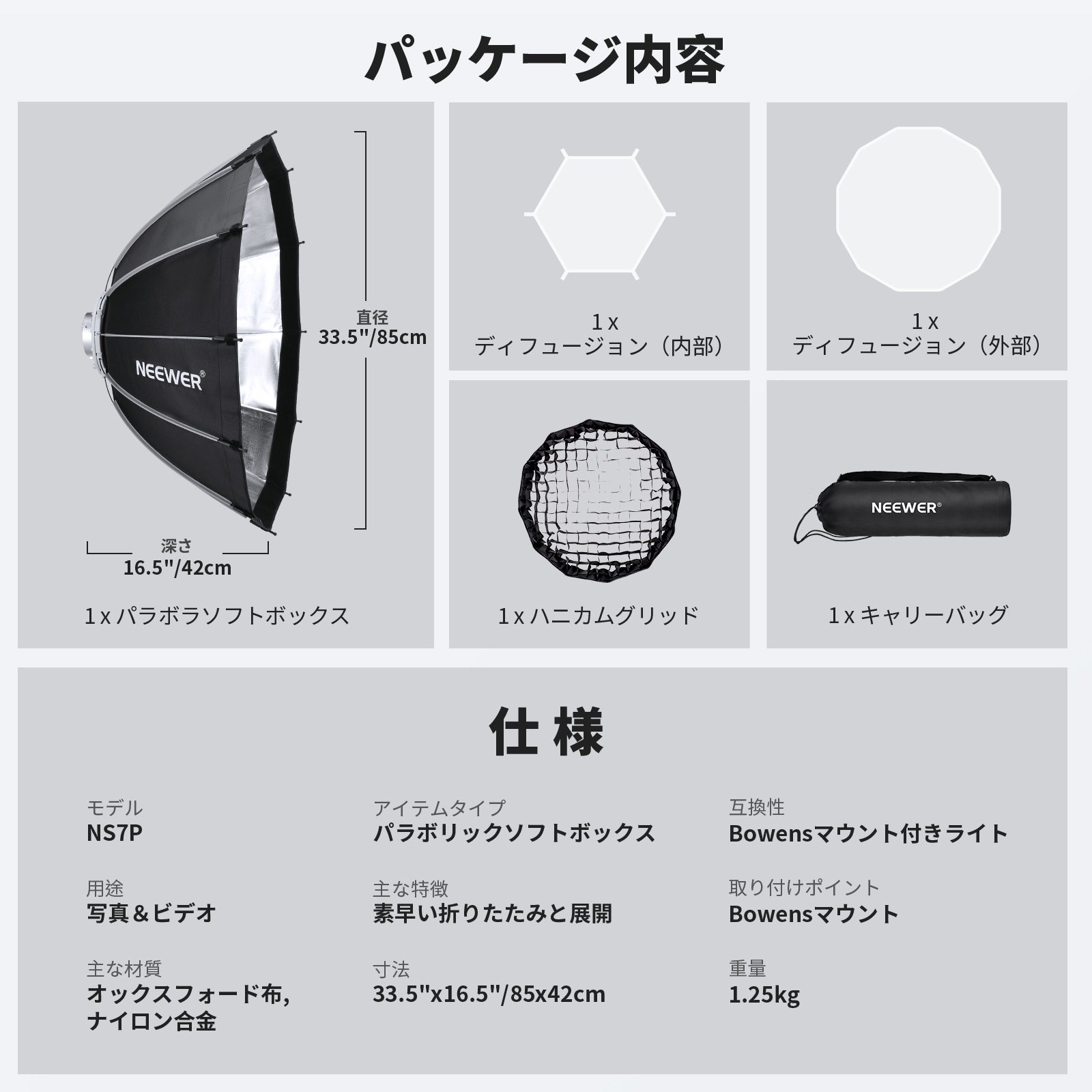 NEEWER NS6P/NS7P パラボラソフトボックス