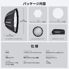 • 【プロパラボリックソフトボックス】12面パラボリックソフトボックスは開口部サイズがΦ25.6"×14.2"/Φ65×36cmで、ナイロン生地に滑らかで均一なシルバーの内部コーティングが施されており、本来の色調を保ちながら光を広げ、拡散させ、柔らかくします。2層ディフューザーとハニカムグリッドにより、最適な出力を実現します。