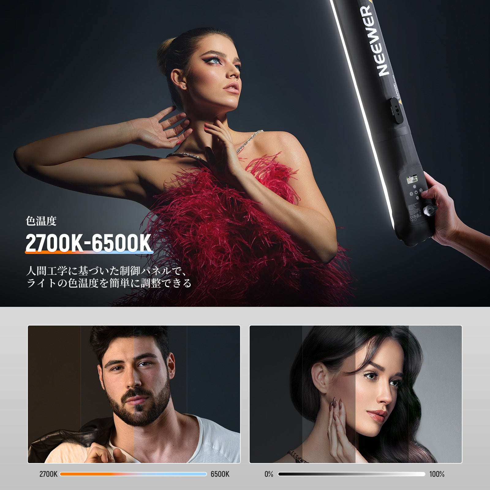 - 【高演色性&2色調光可能】LEDスティックライトは320個高輝度LEDチップを内蔵し、1300Lux/0.5m強力照度を放出し、2700K-6500K広域色温度調整可能で、暖色から寒色までシームレスに切り替えます。0%-100%無段階調光機能で、スタジオ照明から旅行先の補助光まで、あらゆる撮影条件に適応し、CRI95高演色性が被写体の自然な色再現も保証します。
