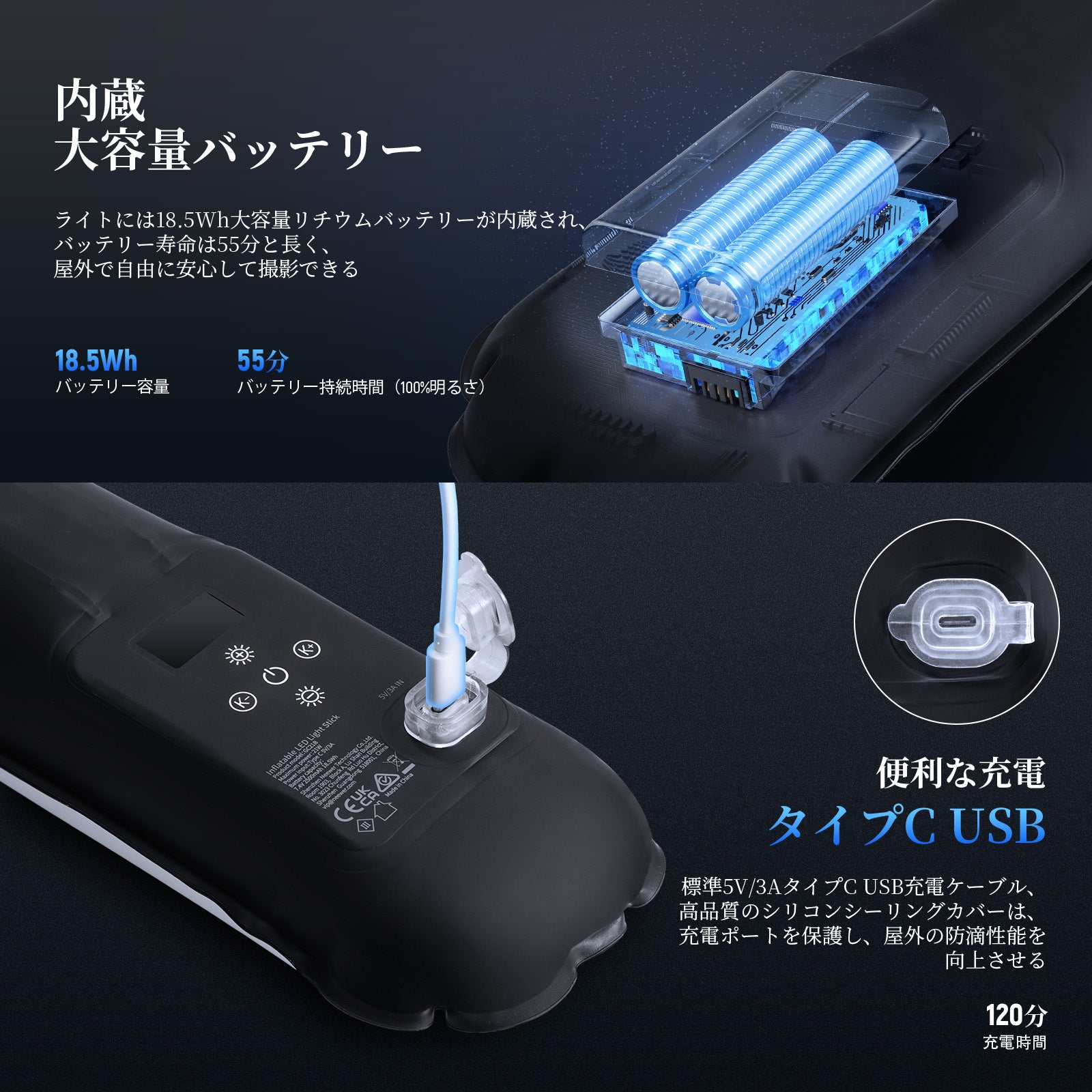 動作時間:100%明るさで50分