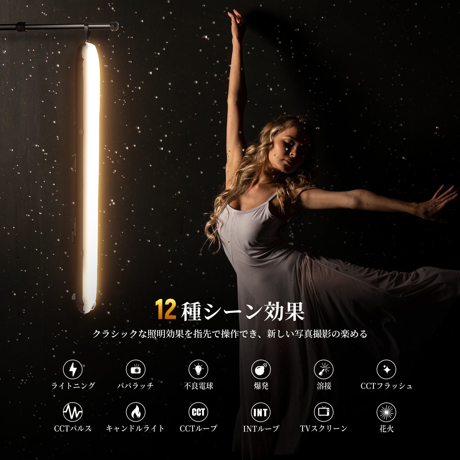 【12種クリエイティブ照明モード】多機能LED撮影用ライトはパパラッチ、電球故障、爆発、溶接光、CCTフリッカー、CCTパルスなど12つ特殊効果シーンを提供し、動画撮影時の臨場感ある照明演出が作成します。0.98"/2.49cmフルカラースクリーンを備え、直感的な操作を実現し、創造な表現の幅を広げる可能になります。