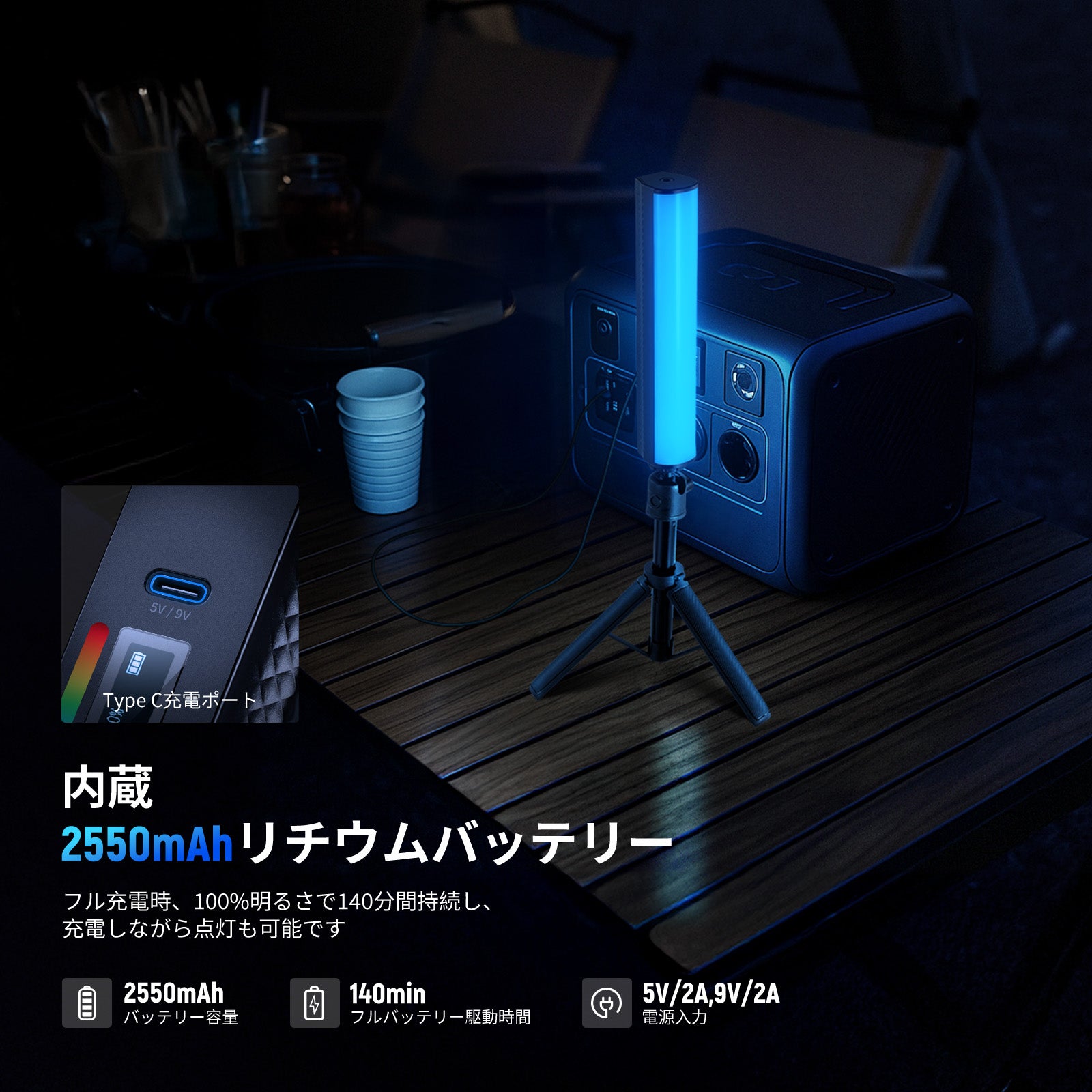 - 【2550mAhリチウム電池&PD3.0急速充電】ポータブルLEDチューブライトは、7.2V 2550mAhリチウム電池で最大140分の連続100%明るさ点灯を実現します。PD3.0高速充電プロトコルにより、Type Cポート経由でわずか110分で充電でき、使用中のシームレスな充電をサポートし、コンテンツクリエイターの必須アイテムであり、インフルエンサー必携のビデオ撮影や写真撮影の小道具として、一日中途切れることのない電力を確保します。