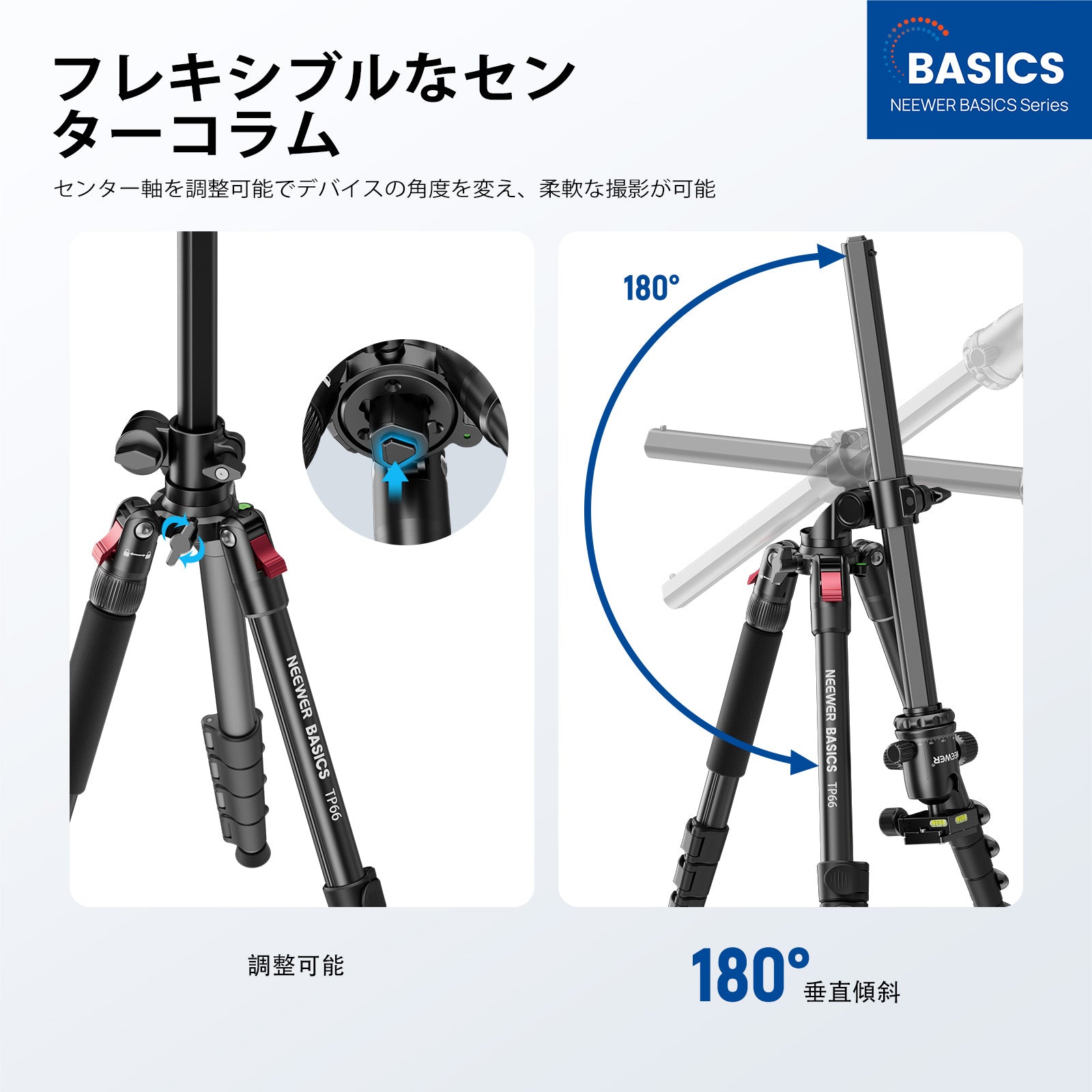 - 【NEEWER BASICS シリーズ】NEEWER BASICS シリーズは、シンプルで実用性に優れたシリーズで、基本的な機能とデザインに基づいて、不要な追加機能や素材がありません。TP66水平オーバーヘッド三脚は、高さ51.5cm-164cm範囲で調整可能で、持ち運びやすくパワフルで、デュアルカメラセットアップ用に設計され、最大10kg機材を支え、360°パン、180°チルトが可能です。三脚は一脚(42.6cm-130.8cm)にも変換でき、様々なシーンに対応します。
