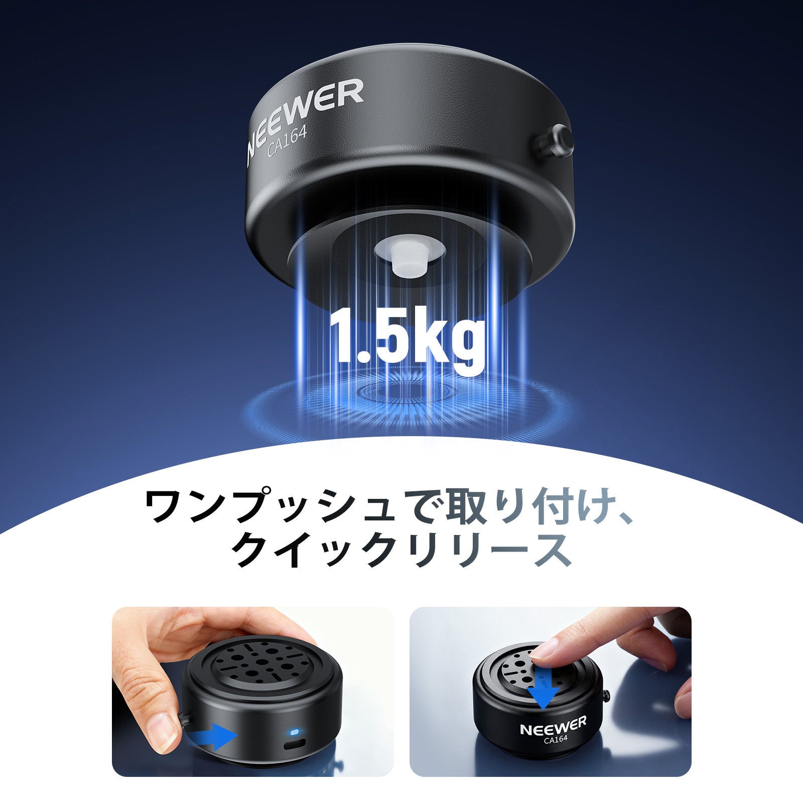 • 【ワンプッシュで取り付け&クイックリリース】電動吸盤式カメラフォンマウントは、車内外どちらにもワンプッシュで固定できます。取り外しはサイドリリースボタンで簡単に行えます。マジックアーム(別売)を介して、スマホホルダーやアクションカメラアダプターに接続できます。